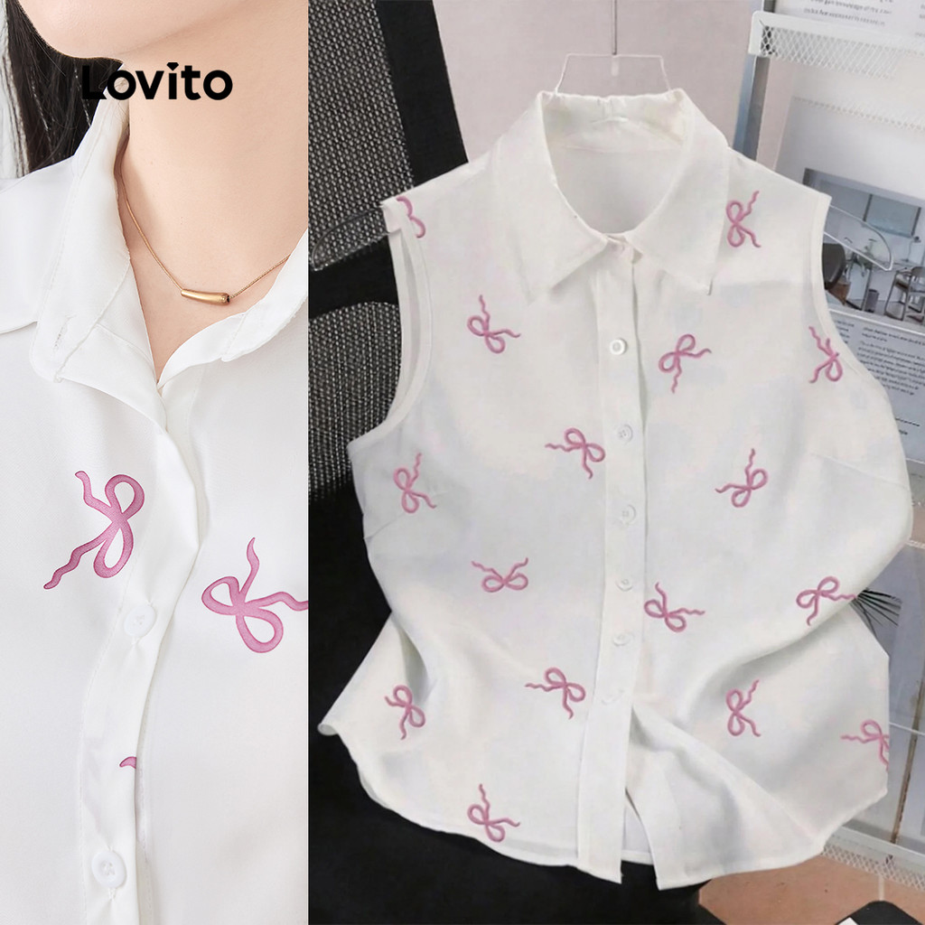 Lovito Blusa Casual Botão Primavera/verão Blusa Branca para Mulheres L171ED163