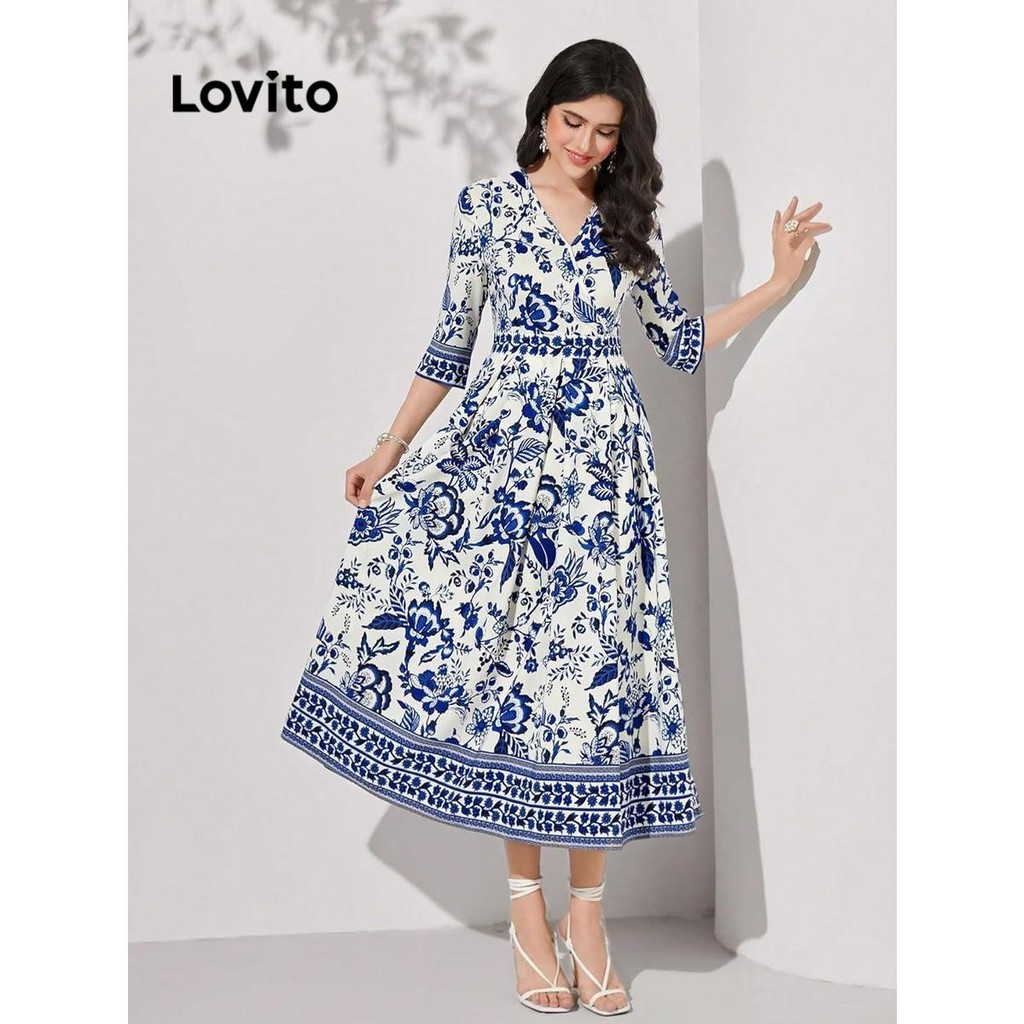 Lovito Vestido Sofisticado com Estampa Floral Delicada para Mulheres LNL67129
