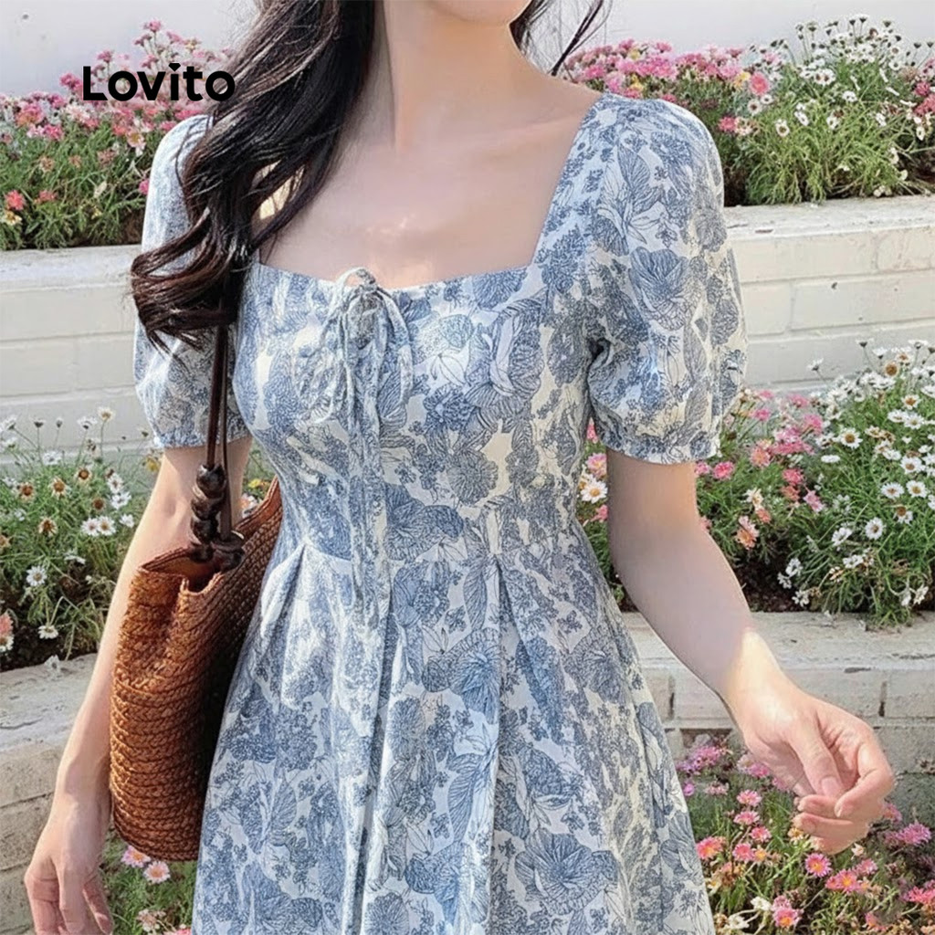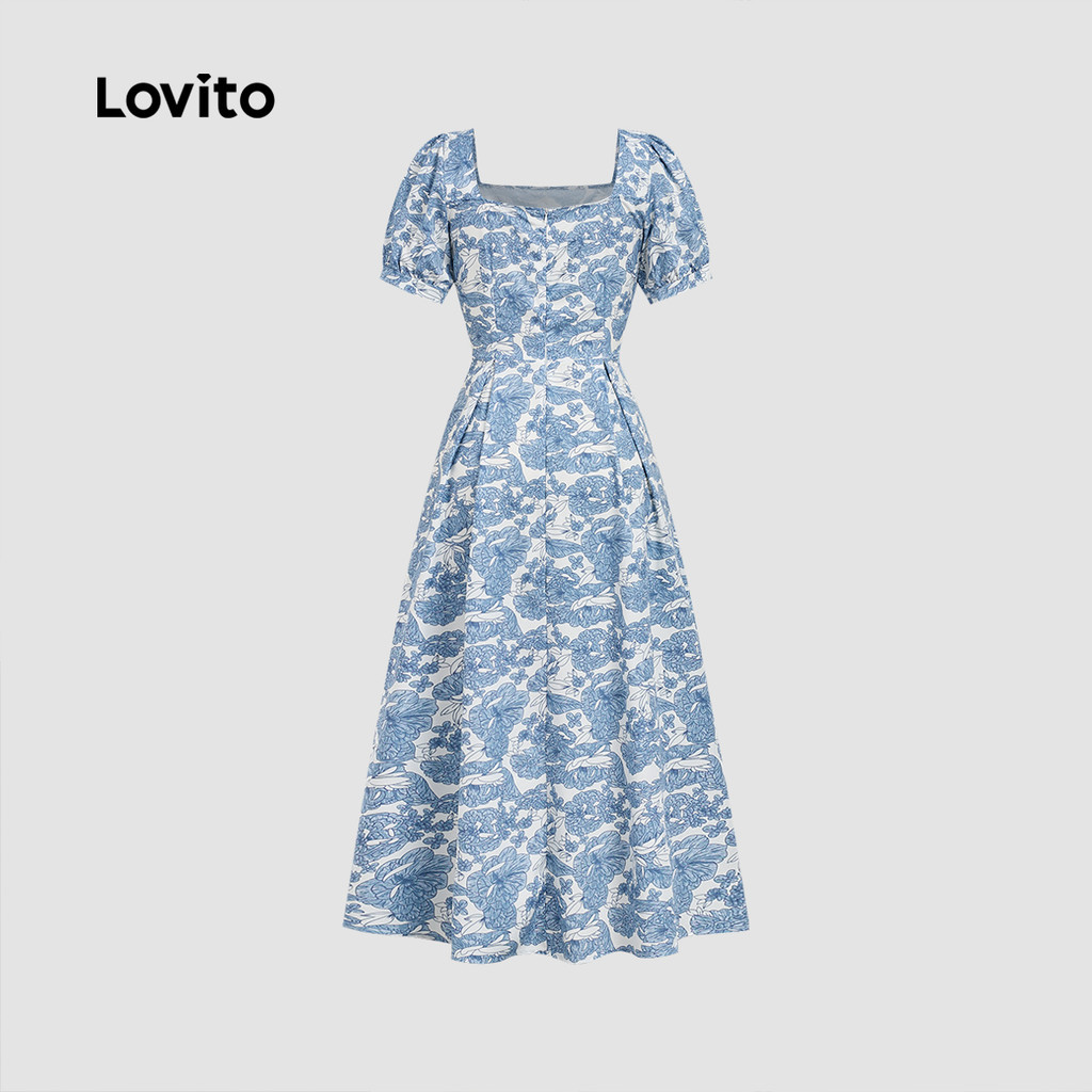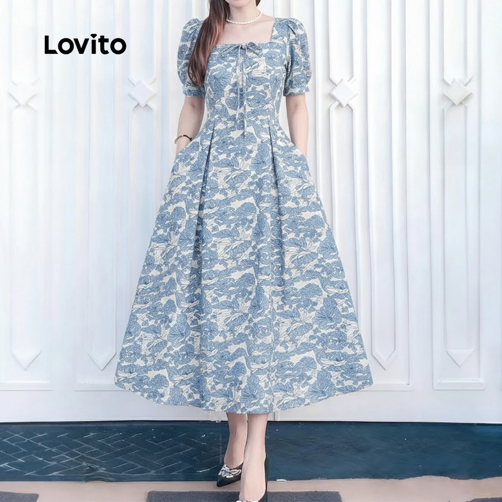 Lovito Vestido Vintage com Renda Vestido Primavera/verão para Mulheres L164ED235
