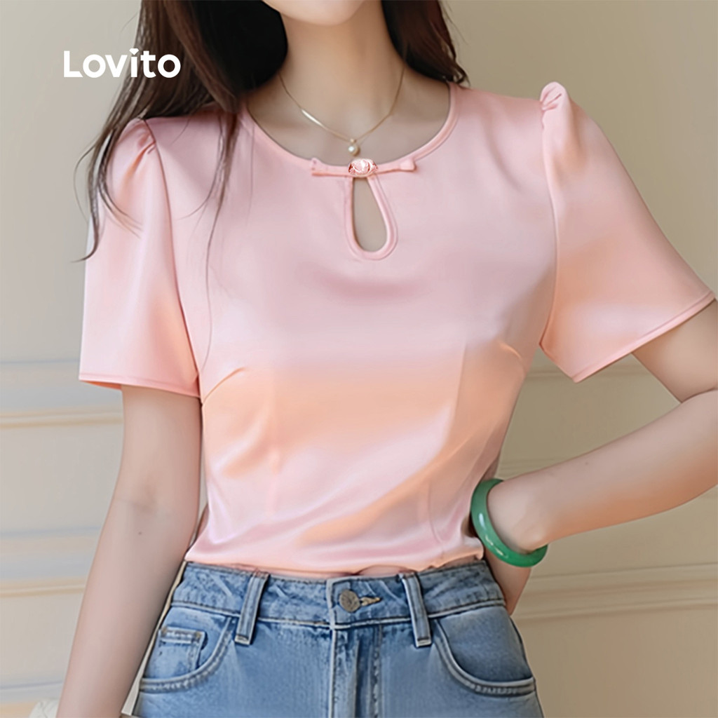 Lovito Blusa Casual Botão Corte Na Moda Estilo Chinês Festa Primavera/verão Rosa para Mulheres L171ED016