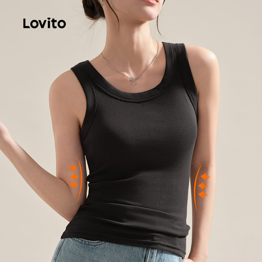 Lovito Regata Esportiva Elástico 4 Vias Costela Sem Costura Corrida Yoga Preto Mulheres LNA133036