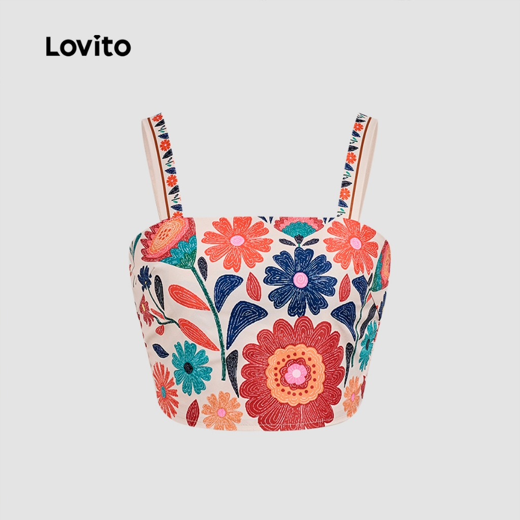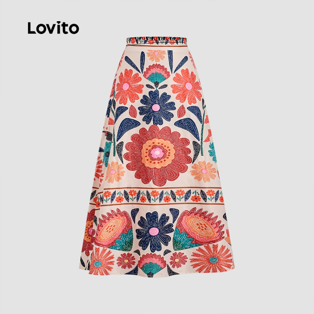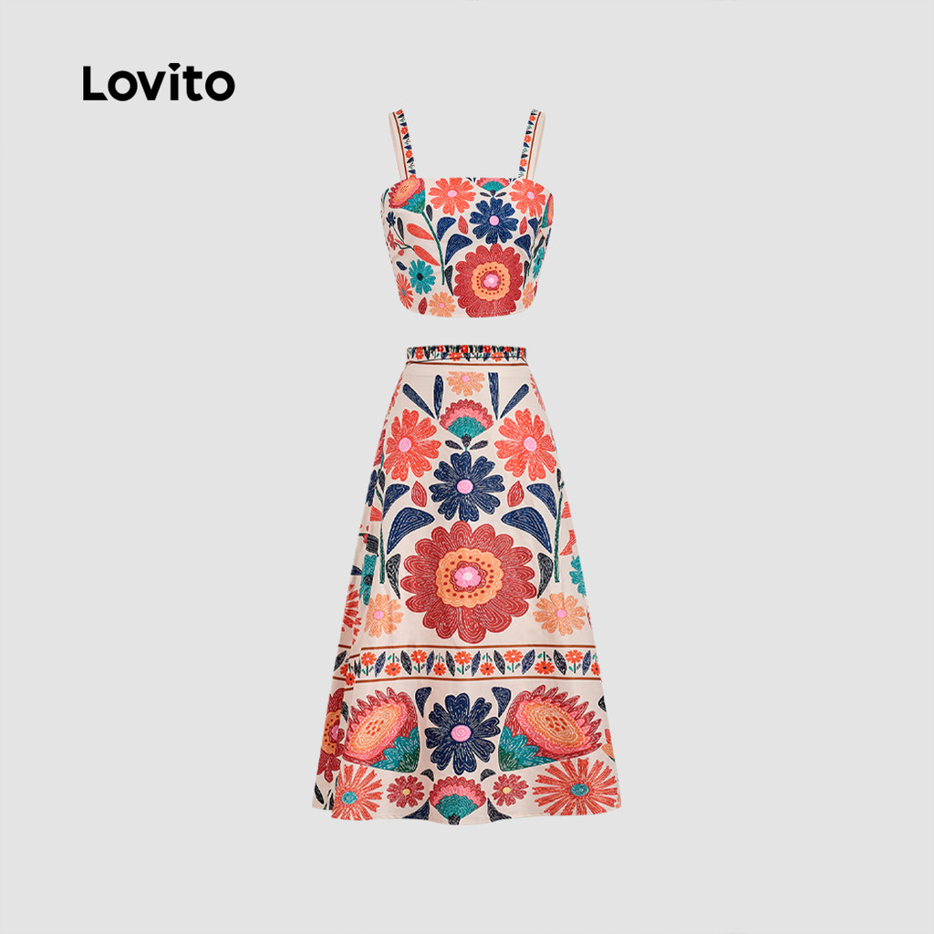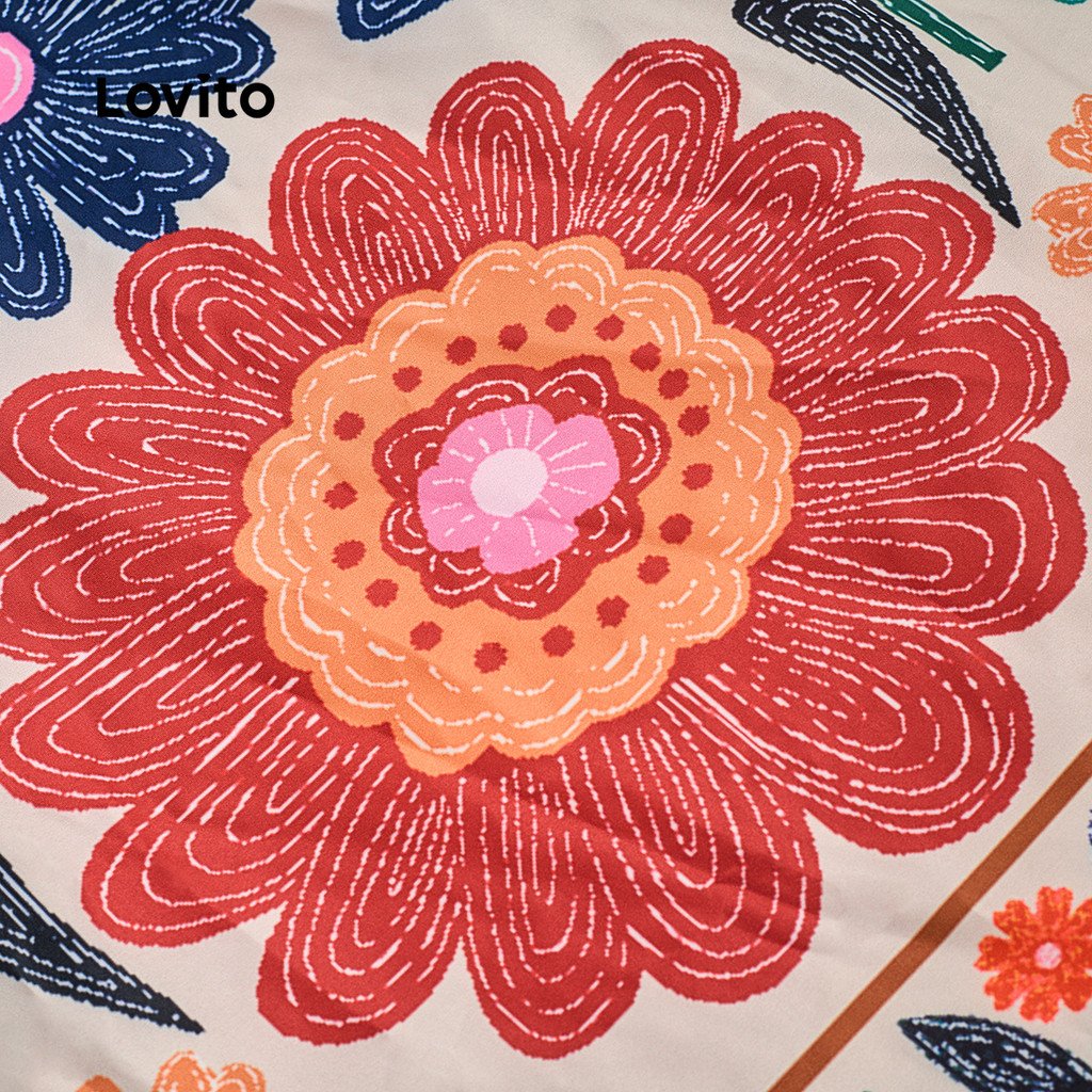 Lovito Conjunto Boho Estampado Verão Novo Carnavalesco Calças ou Blusas Franzidas Primavera/Verão Feminino LBL32015