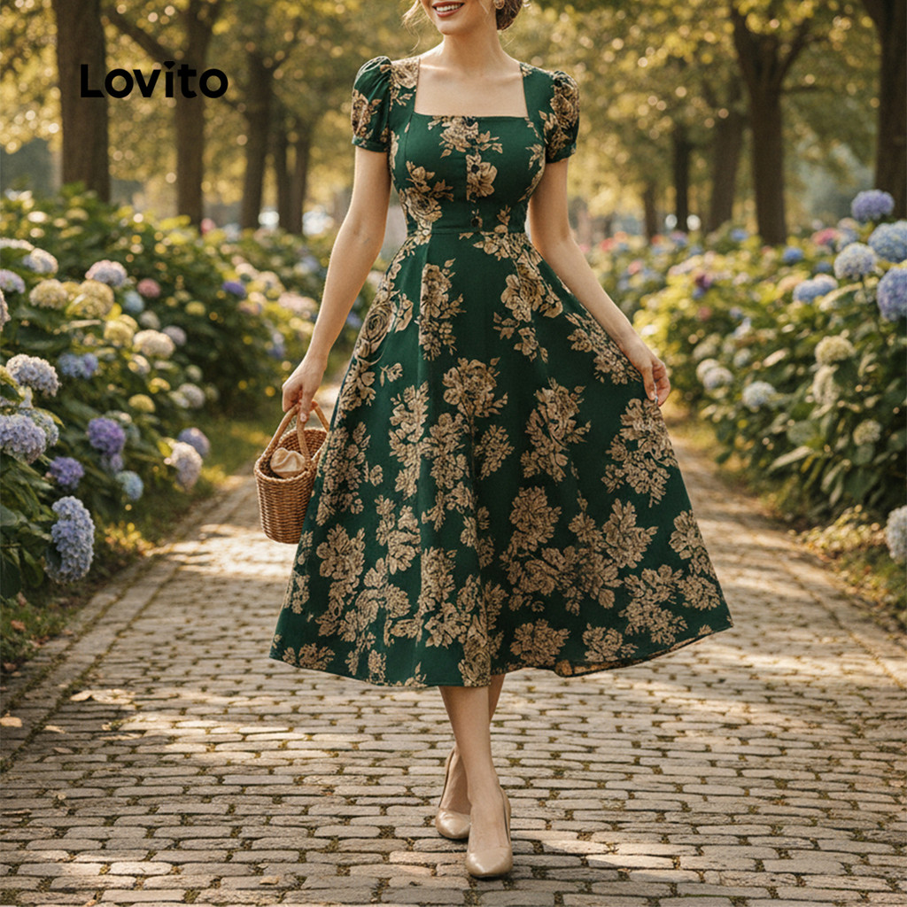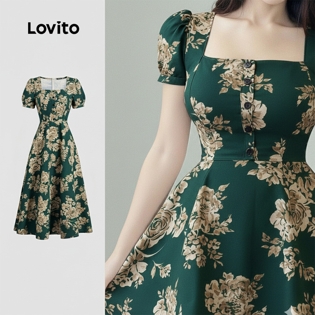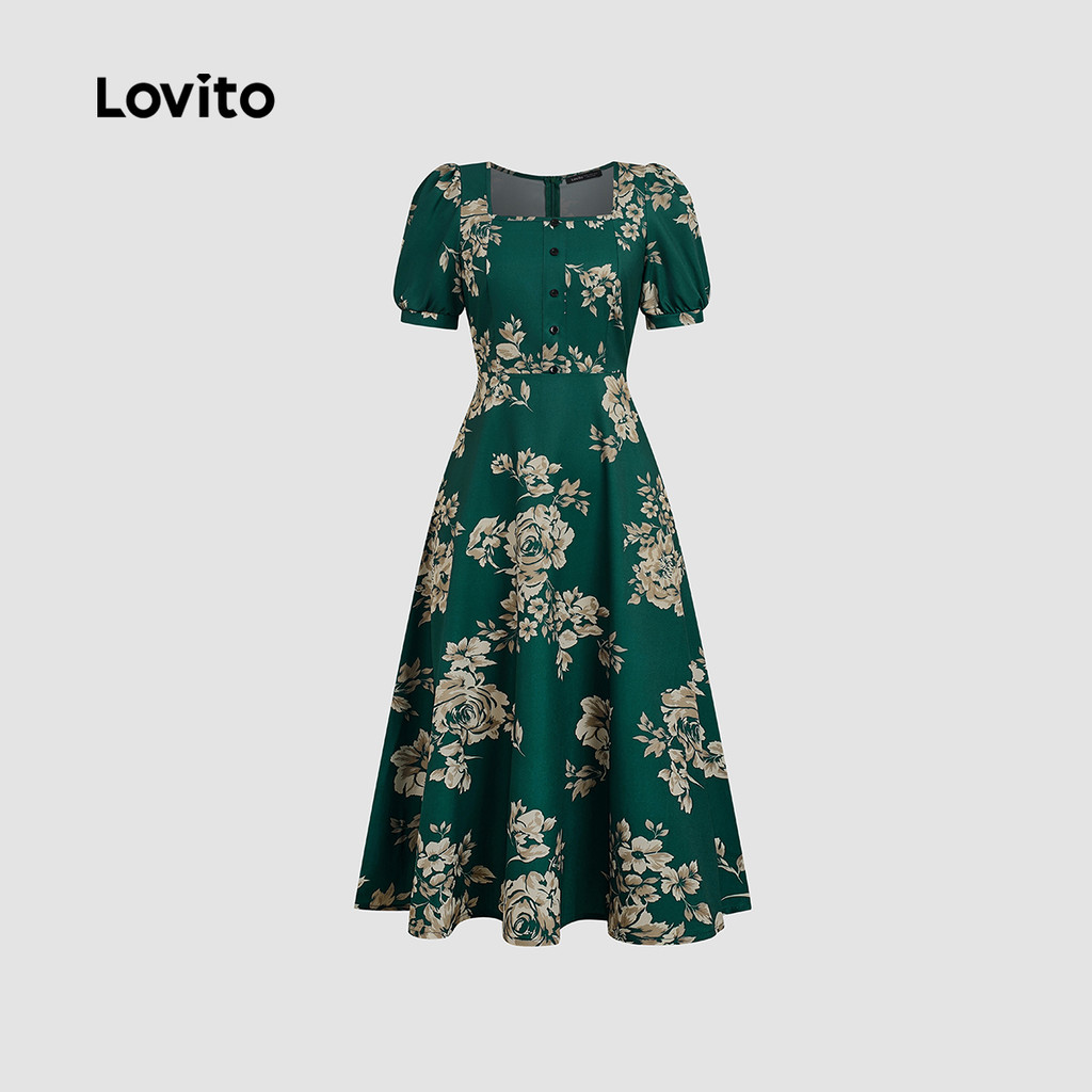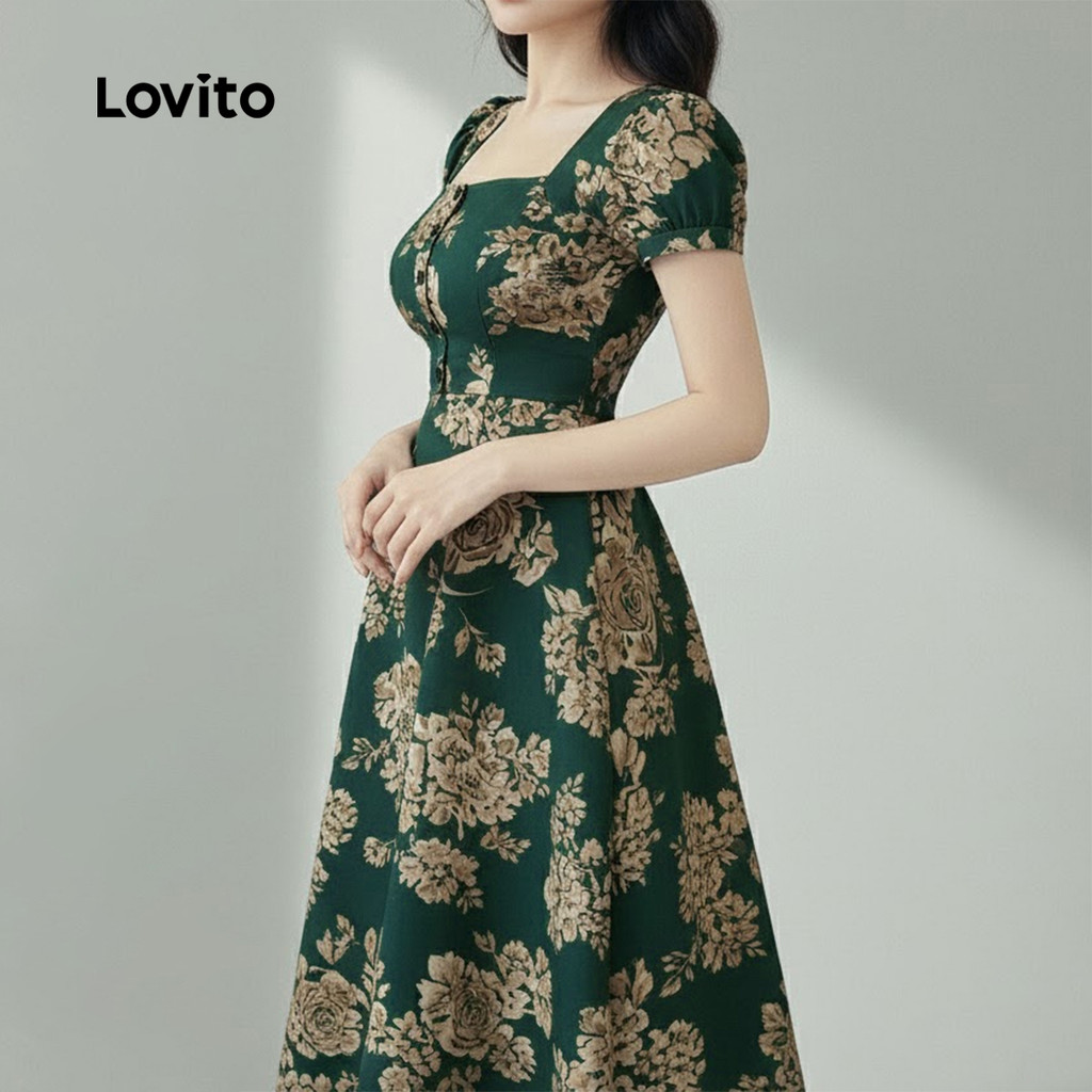 Lovito Vestido Boho Primavera/verão Vestido Verde para Mulheres LK2ED004