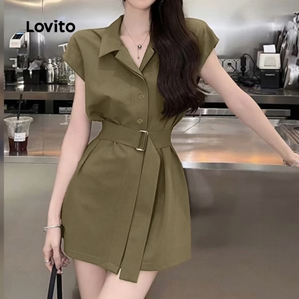 Lovito Macacão Casual com Botões Na Frente e Cadarço Primavera/verão Verde Exército para Mulheres L171ED1049