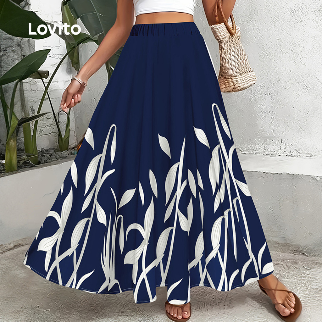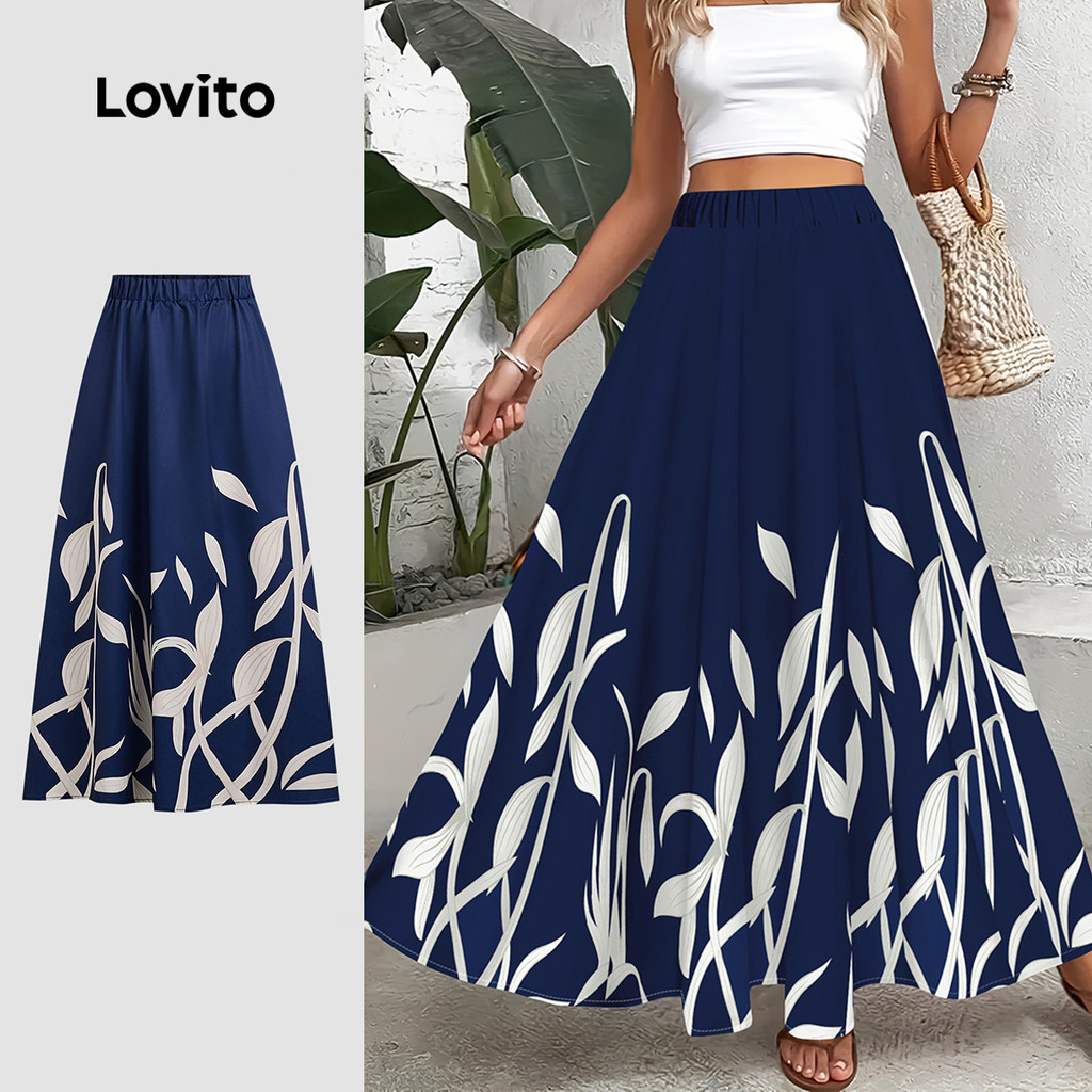 Lovito Saias Boho Padrão Resort Primavera/Verão Azul Marinho Femininas LBL32218