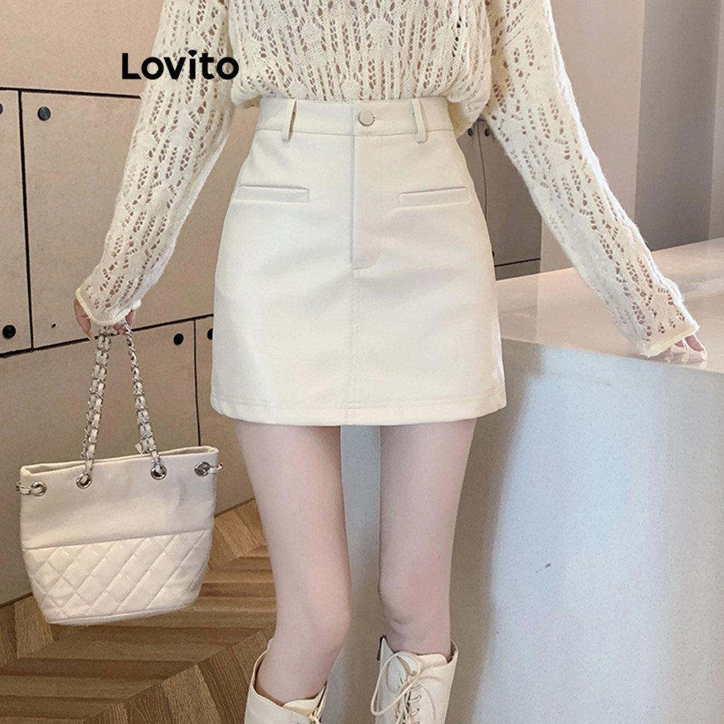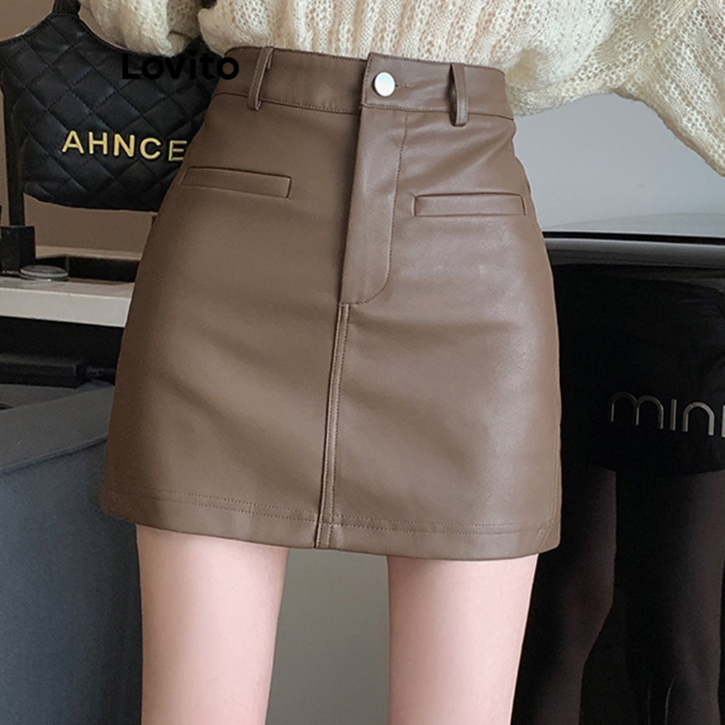 Lovito Saias Femininas Casuais Com Bolso Liso LNA42189\4