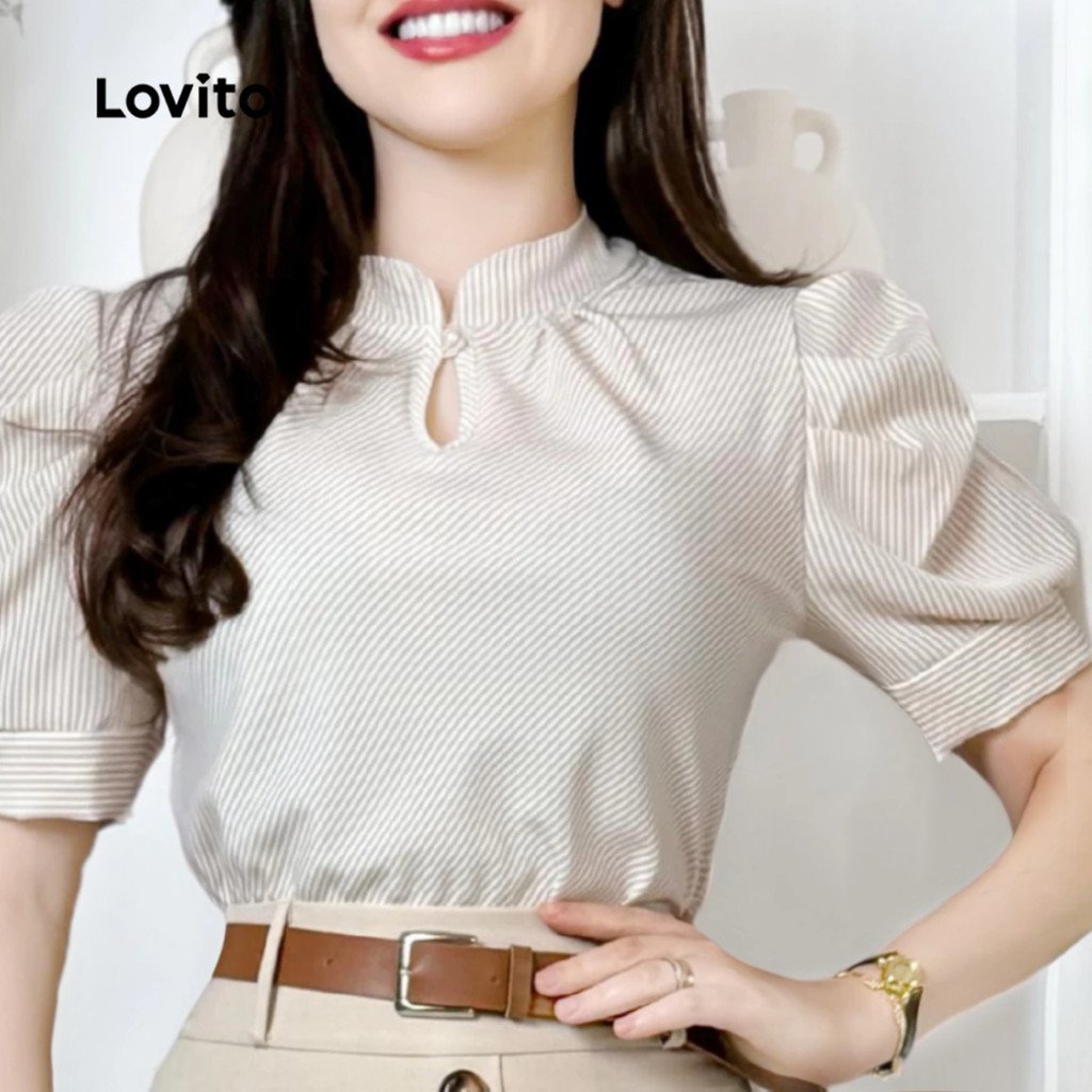 Lovito Blusa Casual Estilo Chinês Cheongsam Qipao, Blusa Cáqui Para Primavera/verão Para Mulheres. L154ED218