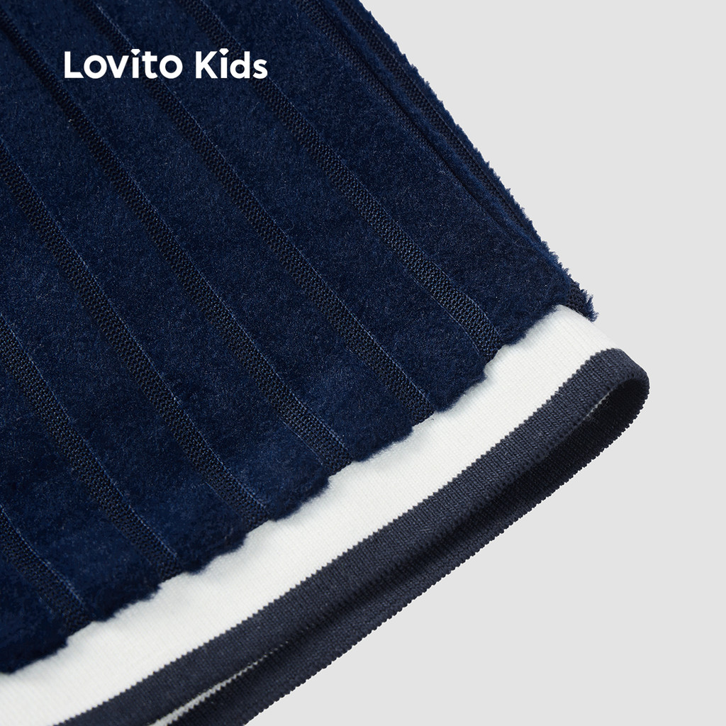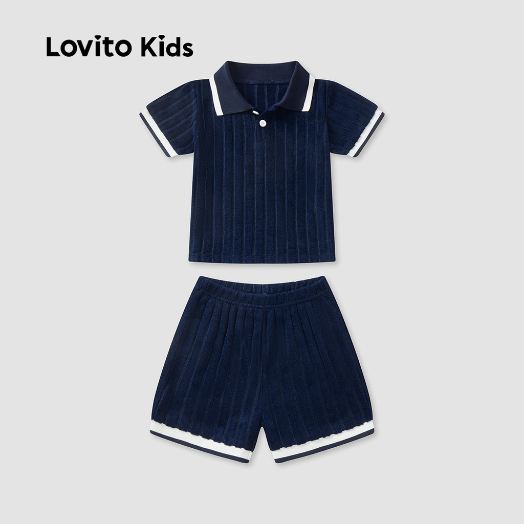 Lovito Kids Conjunto de Bermuda Casual com Fita de Contraste Primavera/verão Azul escuro L162LD218
