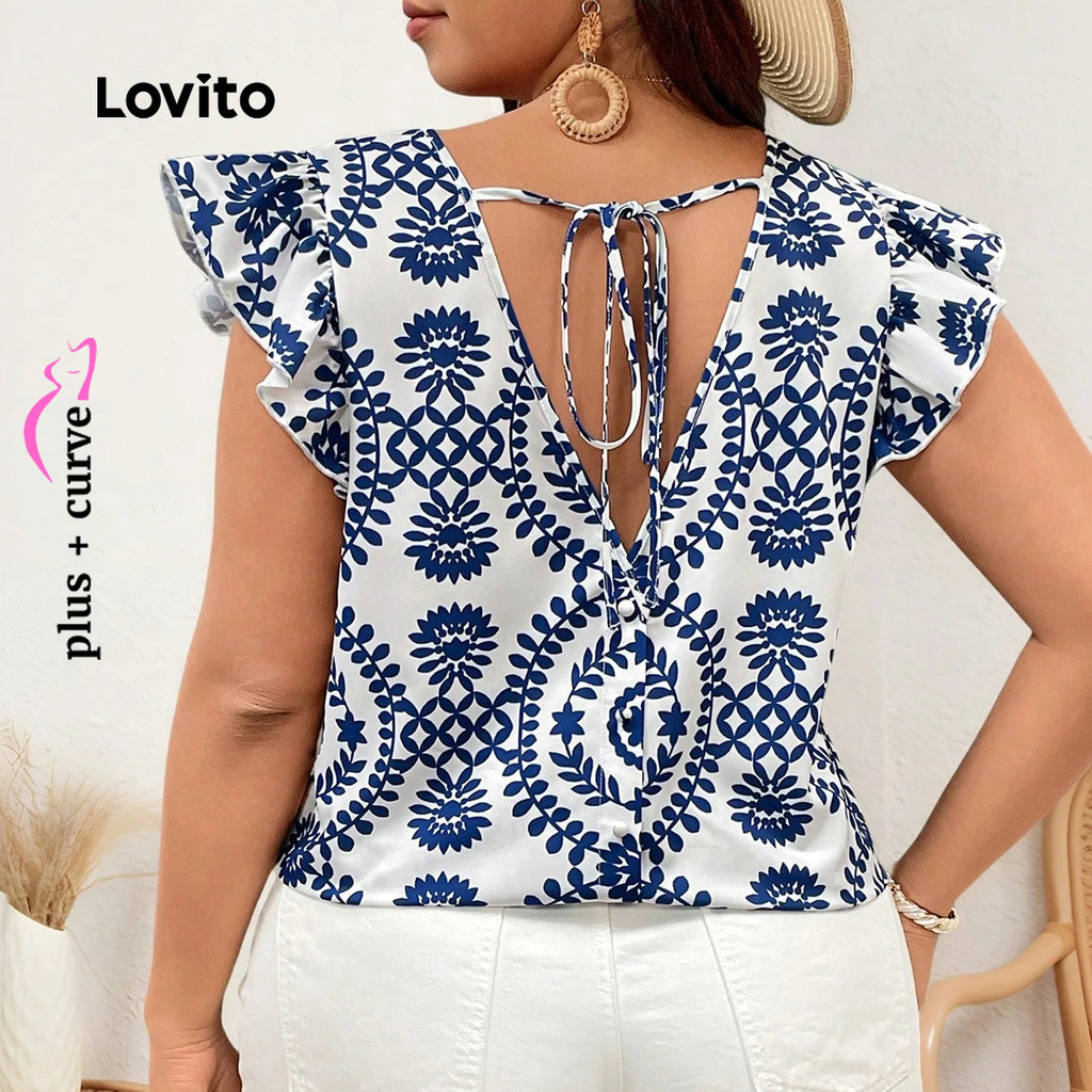 Lovito Blusa Boho com Amarração Nas Costas Blusa Azul para Mulheres - Primavera/Verão LBL31162