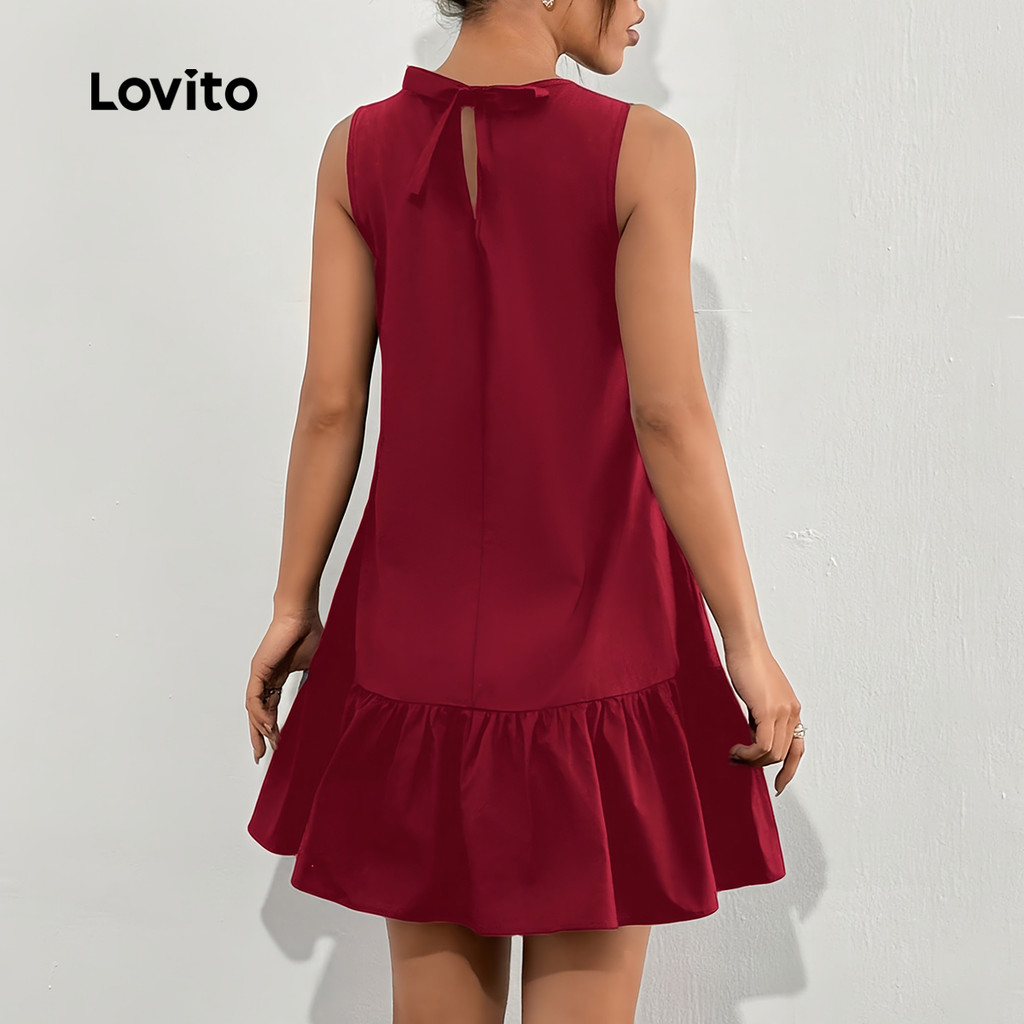 Lovito Vestido Vermelho Sofisticado Com Laço Nas Costas Ideal Para Festa De Natal Primavera Verão Feminino LBL31120