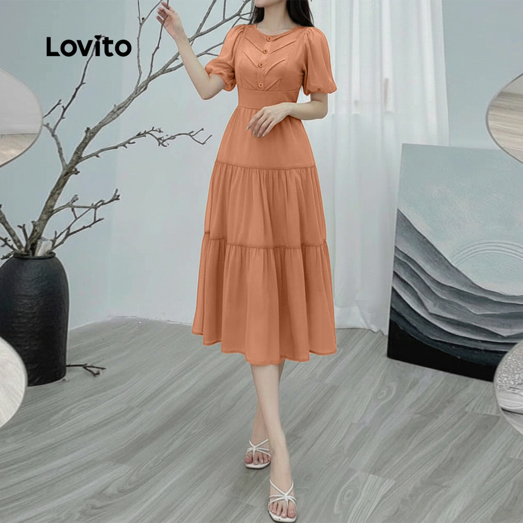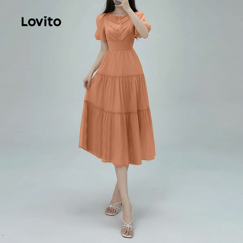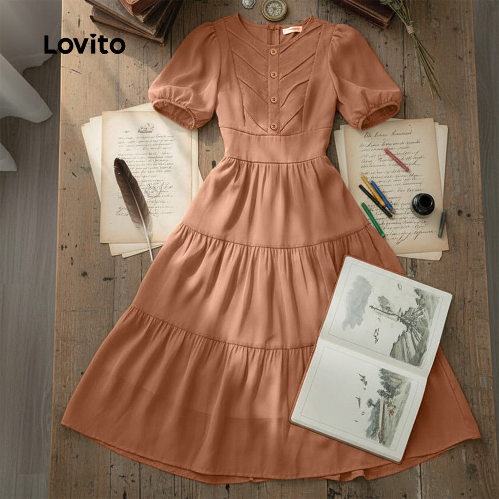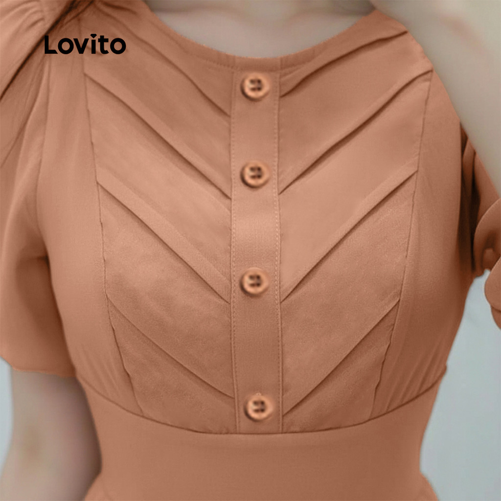 Lovito Vestido Casual Estrutura Linha Primavera/verão Caqui para Mulheres L167ED050