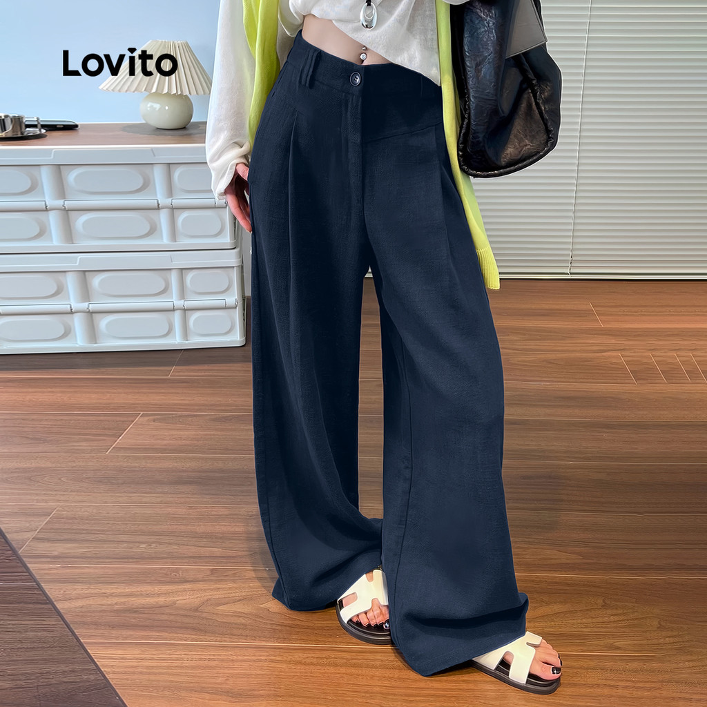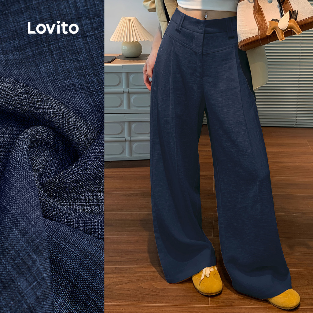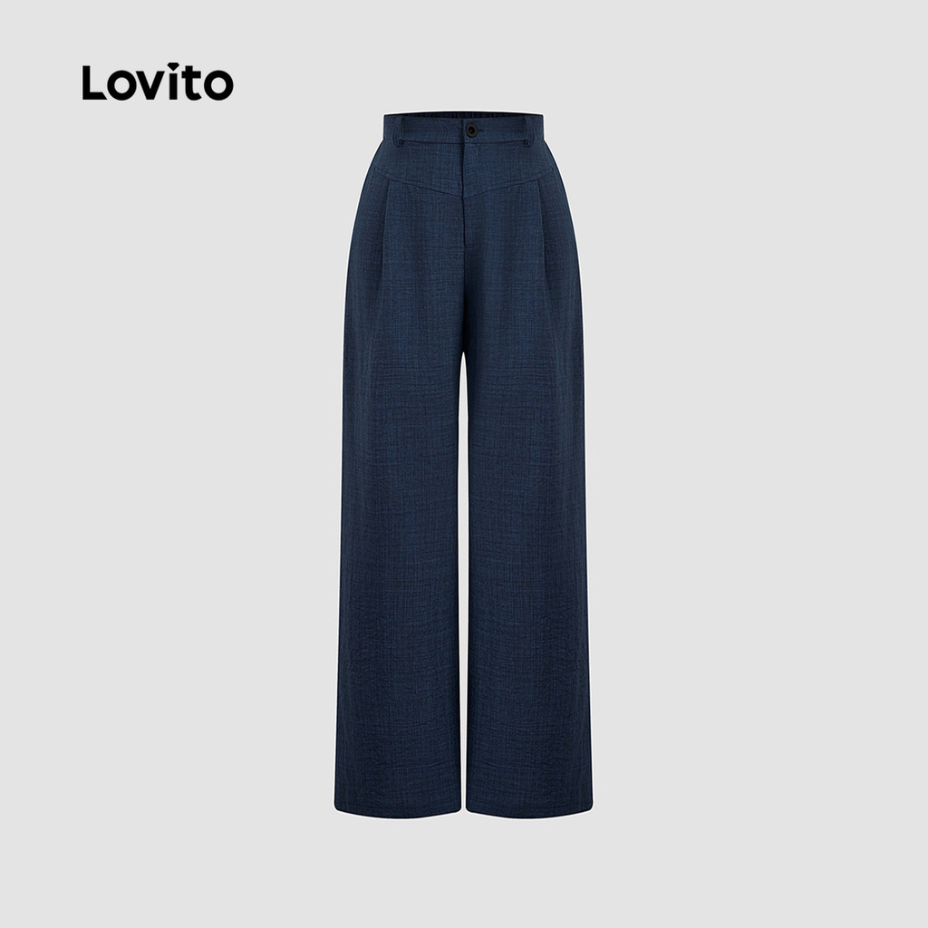 Lovito Calça Casual Lazer Azul-marinho para Mulheres L173AD032