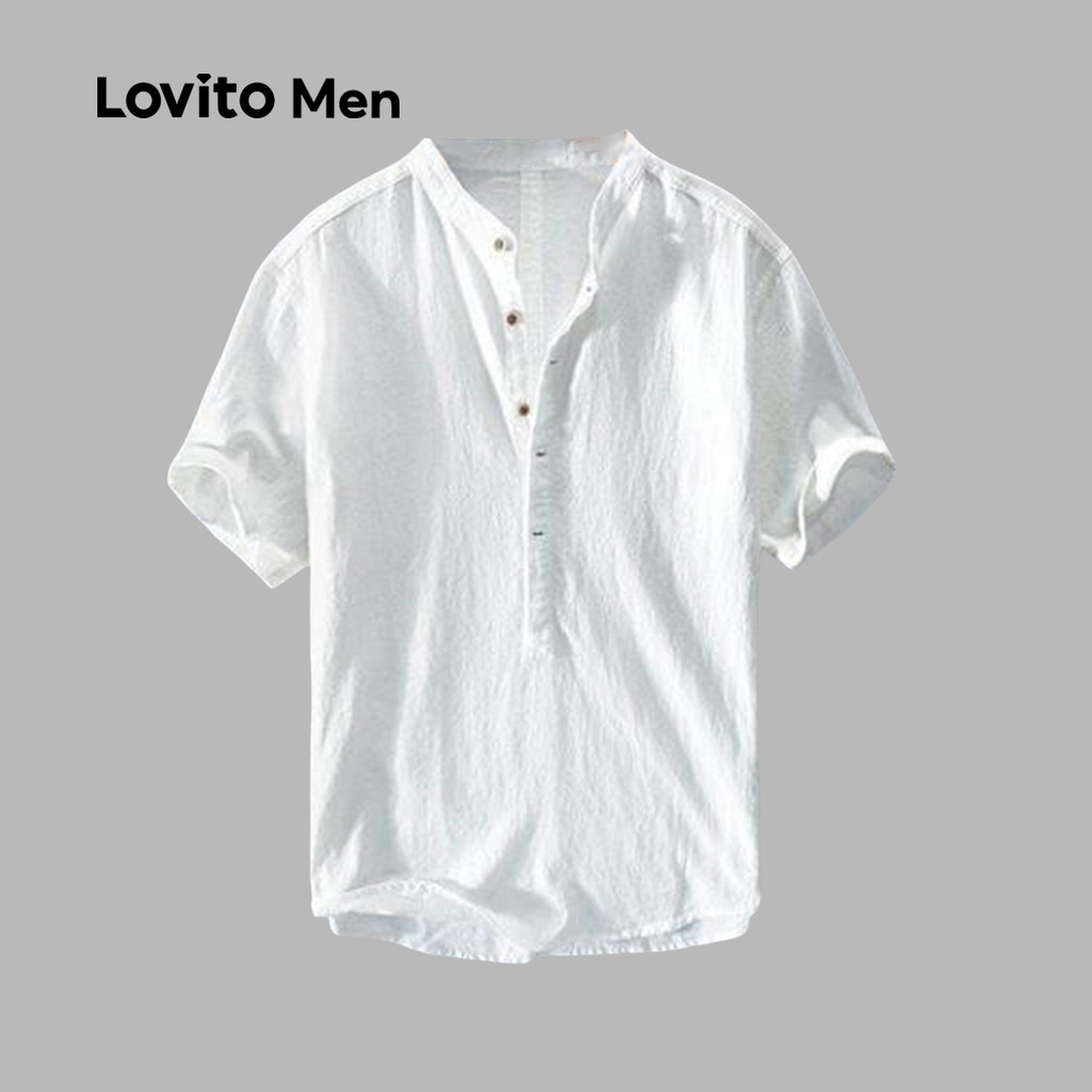 Lovito Camisa Branca Masculina com Botões para Primavera/Verão LNE110033