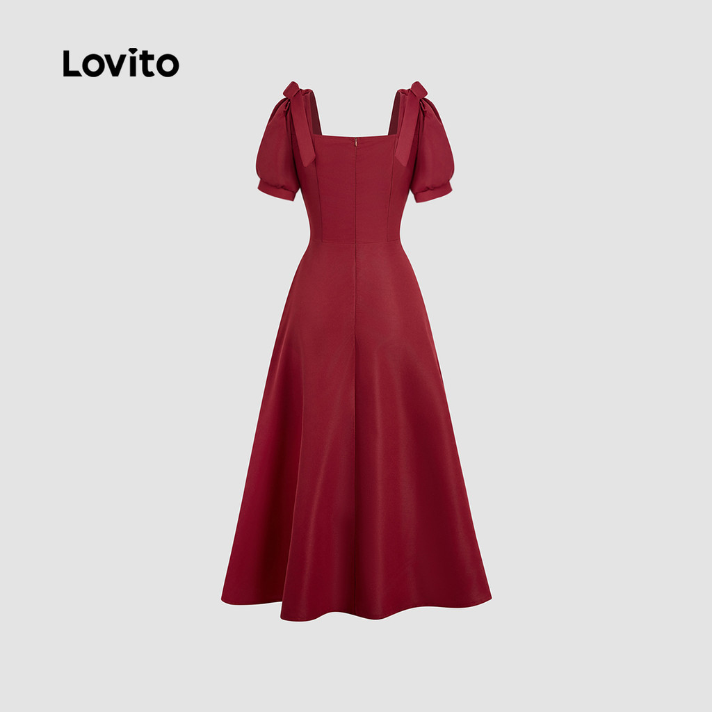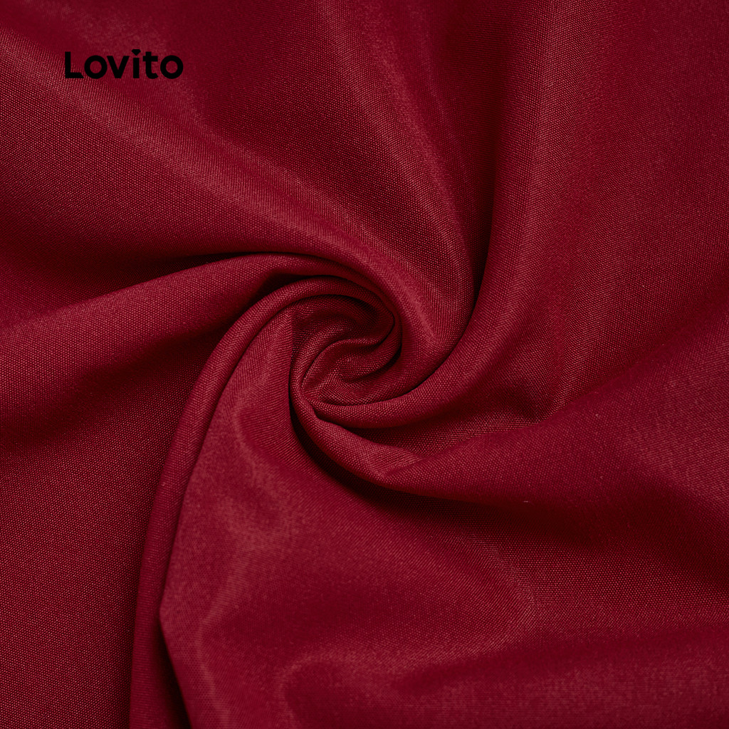 Lovito Vestido Elegante Para Festa Com Botões Bordô Primavera/verão Feminino L158AD209