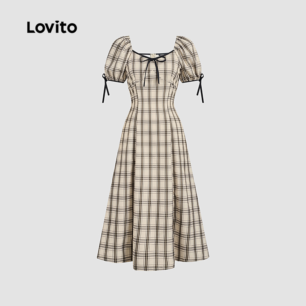 Lovito Vestido Vintage com Amarração Colorblock Primavera/verão para Mulheres L171ED166