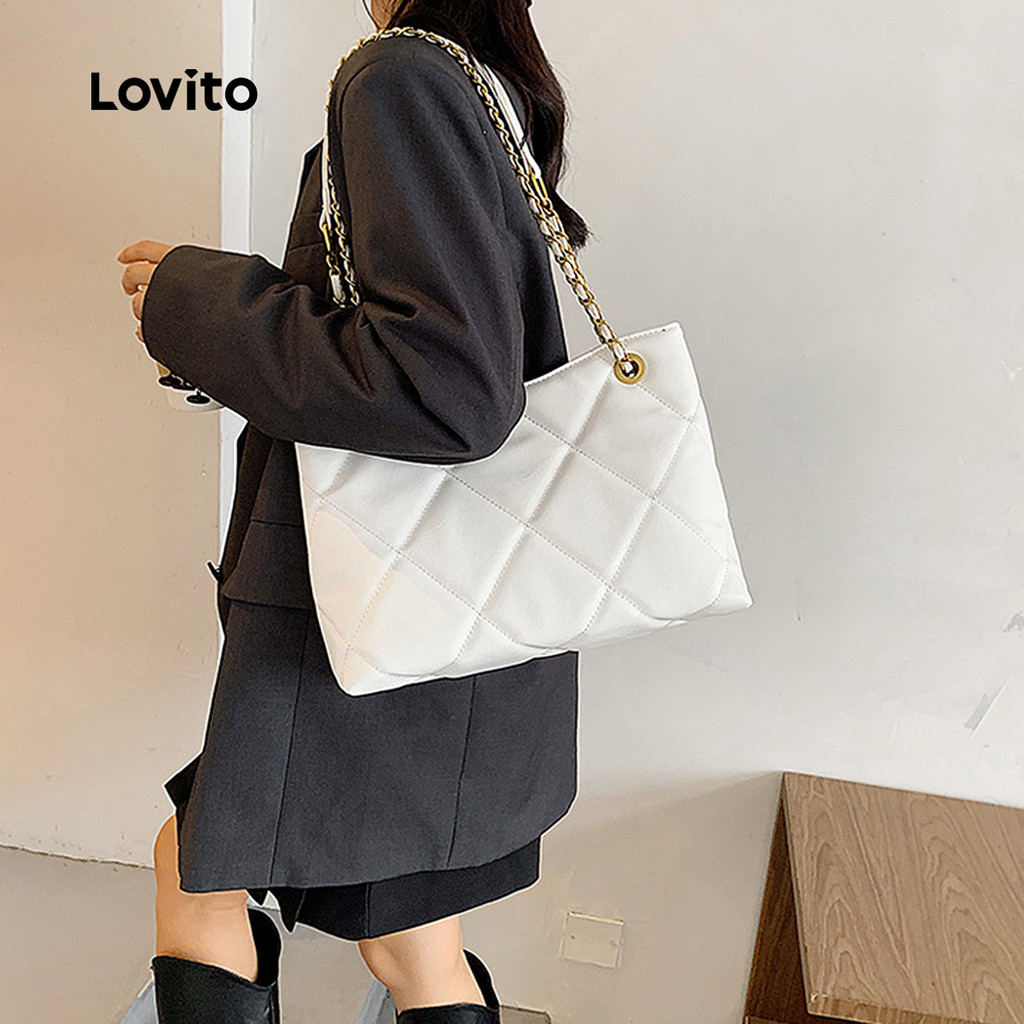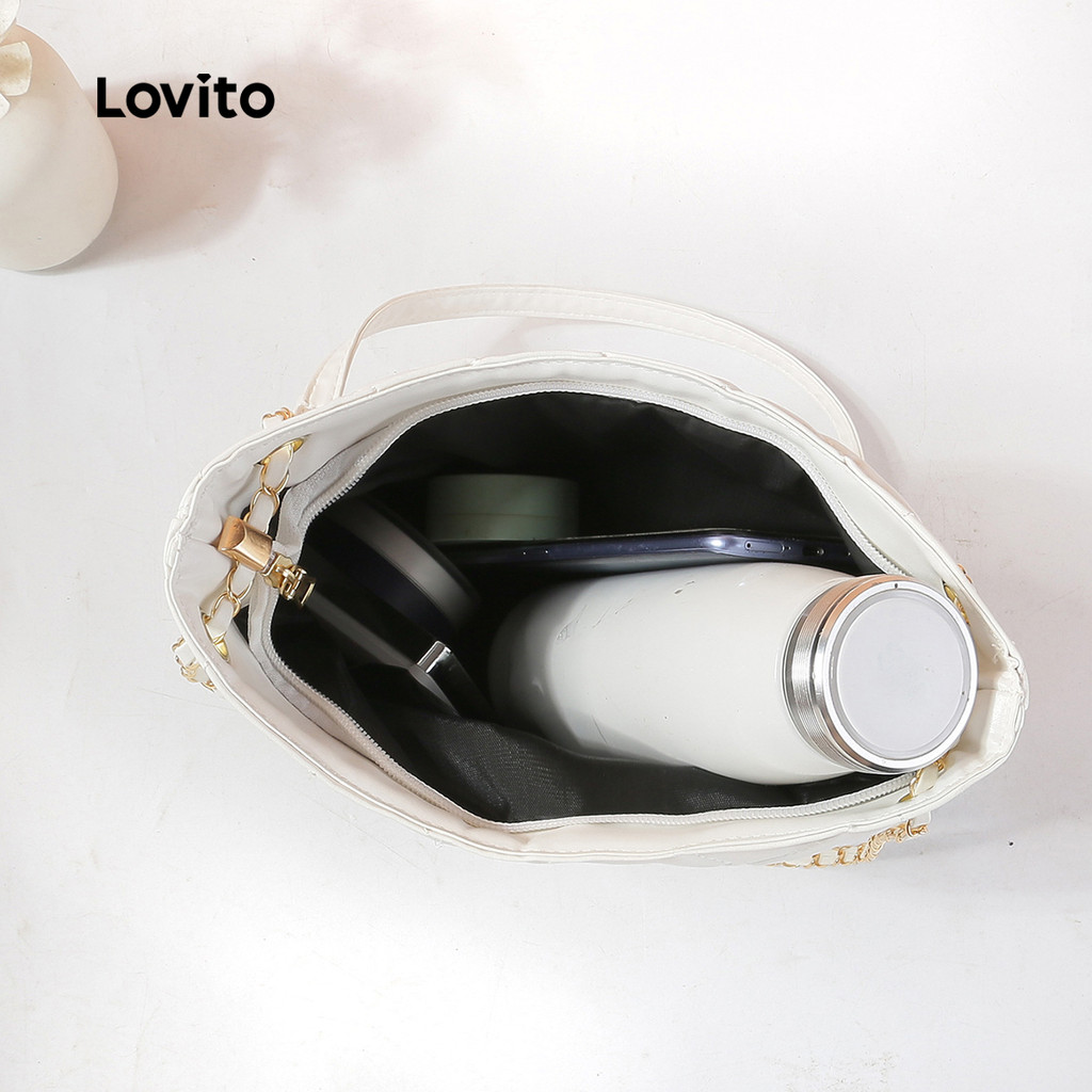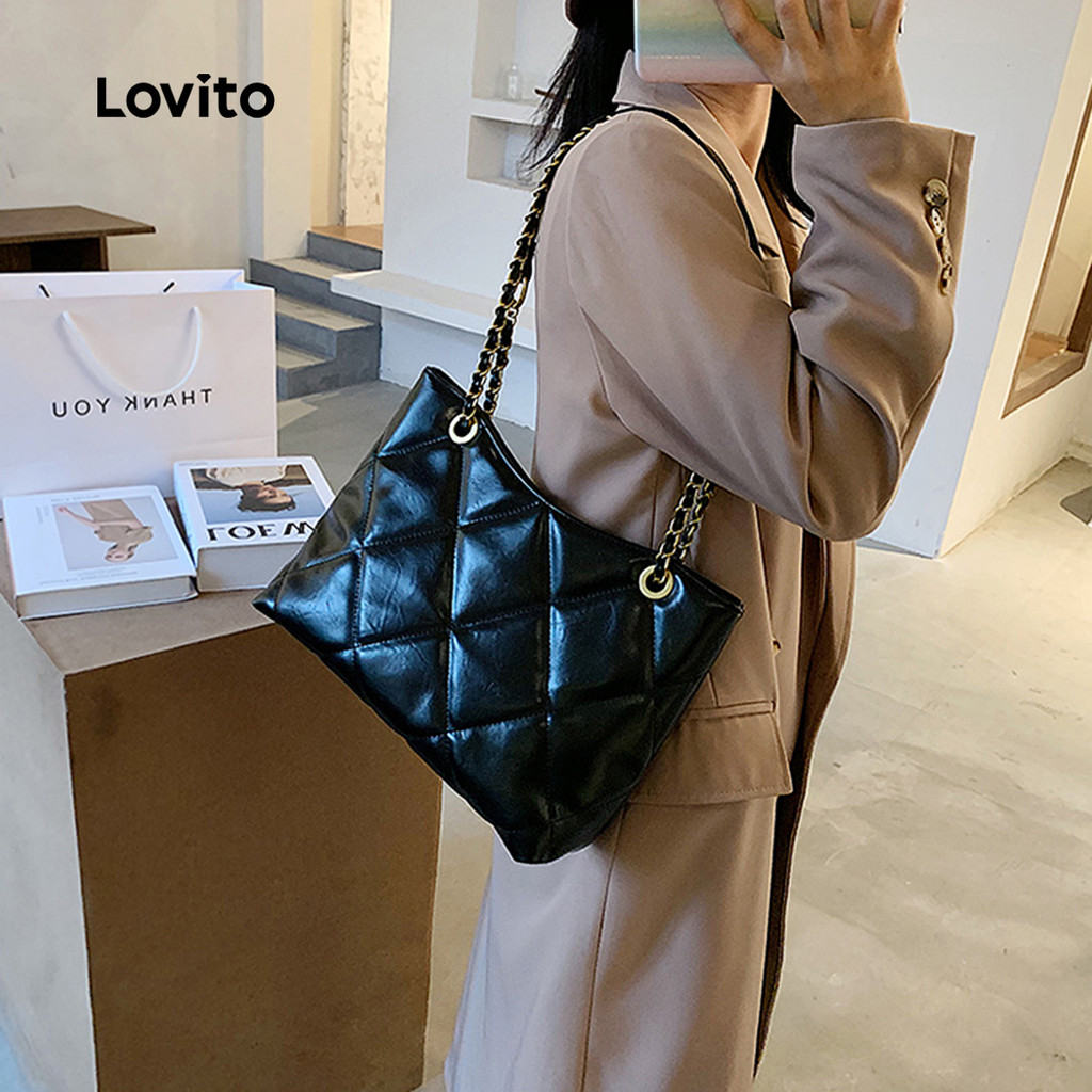 Lovito Bolsa Feminina Casual De Ombro Acolchoada De Grande Capacidade Com Corrente LFA107049