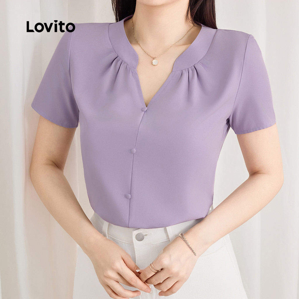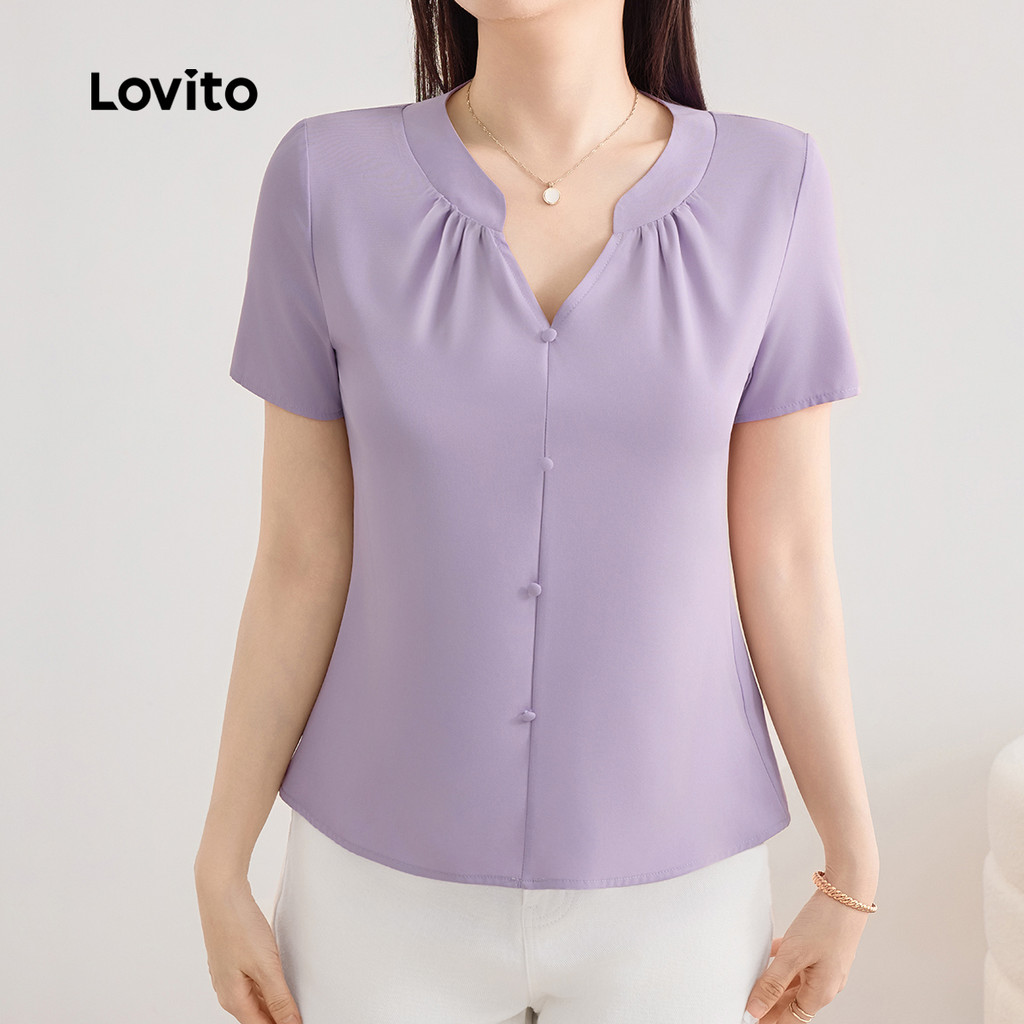 Lovito Blusa Casual Feminina Roxa com Botões para Primavera Verão L143ED109