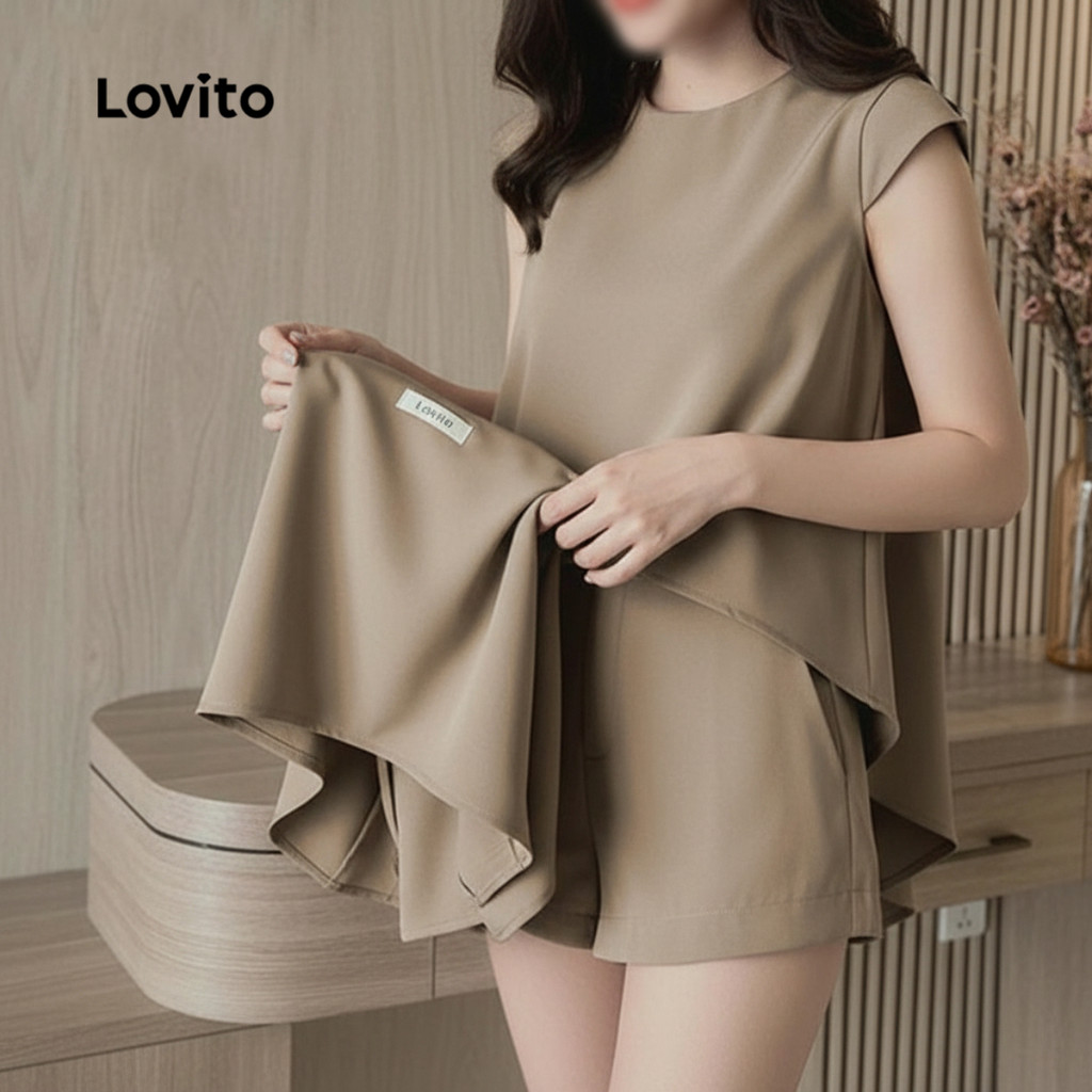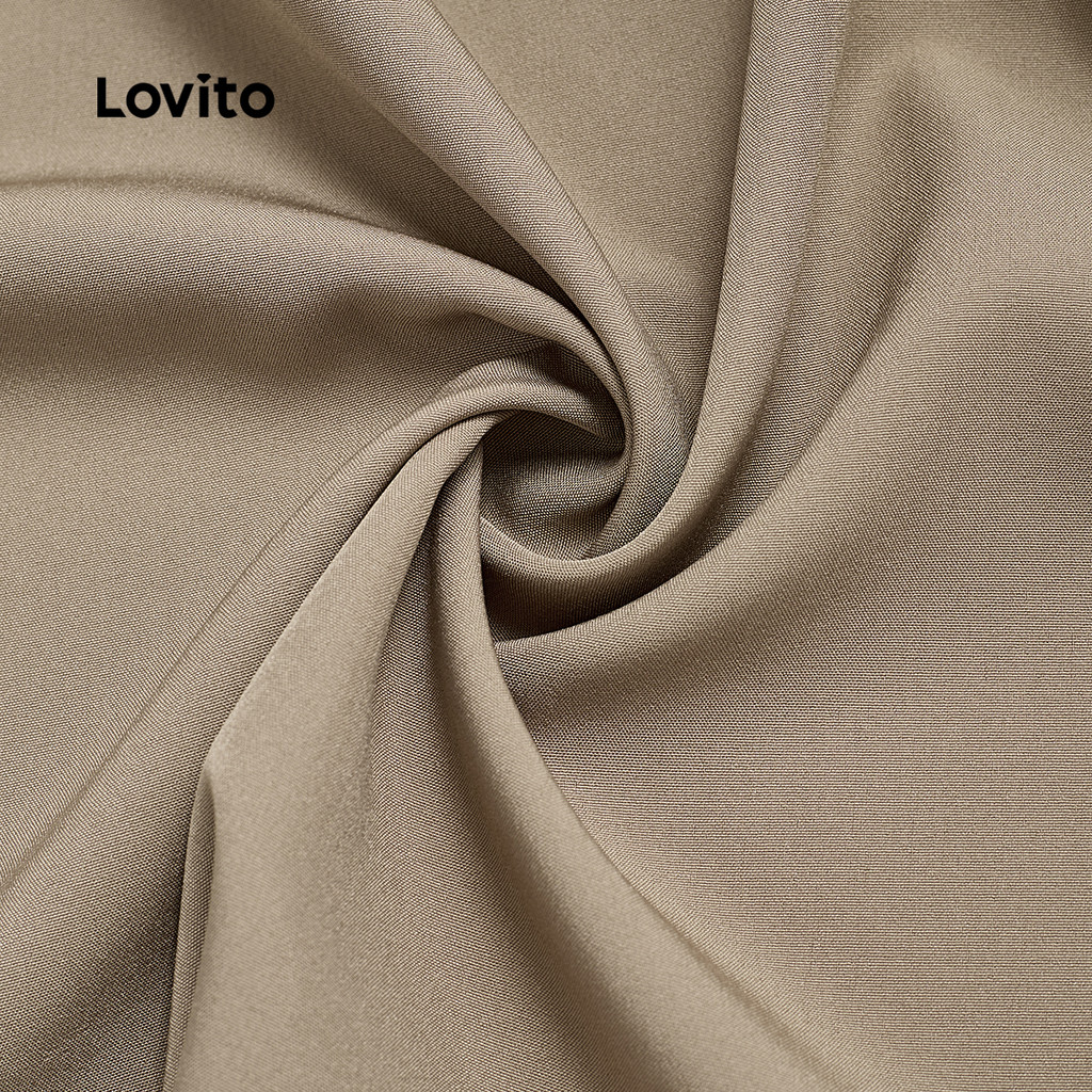 Lovito Conjunto Casual Feminino Shorts Plissados para Primavera Verão Caqui L154ED206