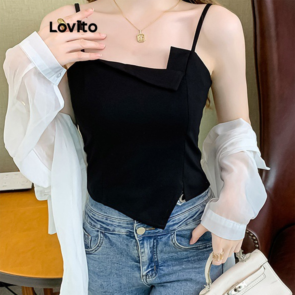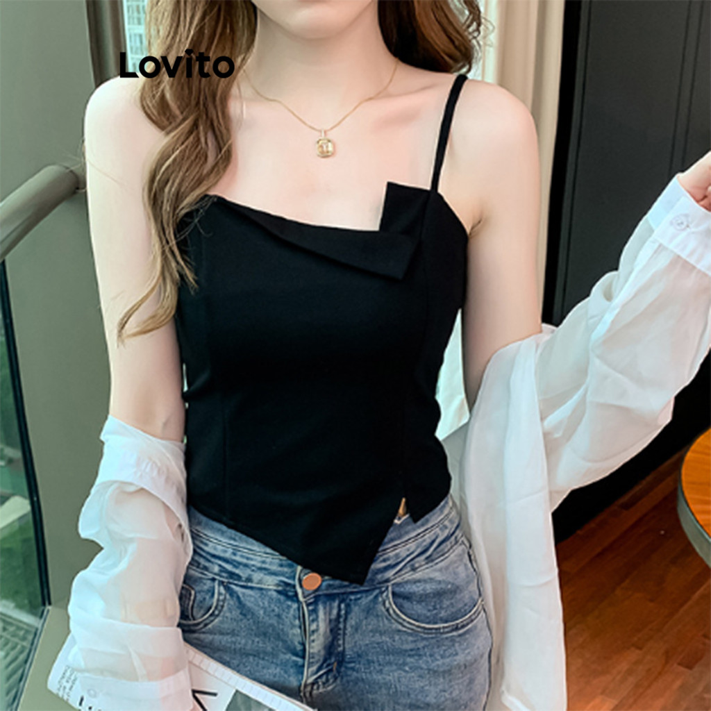 Lovito Regata Assimétrica Lisa Casual Feminina LNE71325