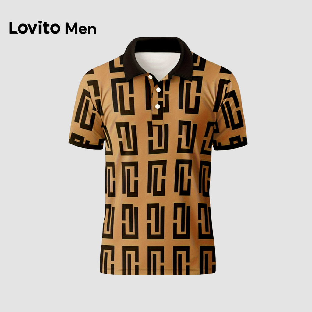 Lovito Men Camisa Polo Casual com Botões - Padrão de Camisa Polo Masculina Primavera/Verão LNE138085