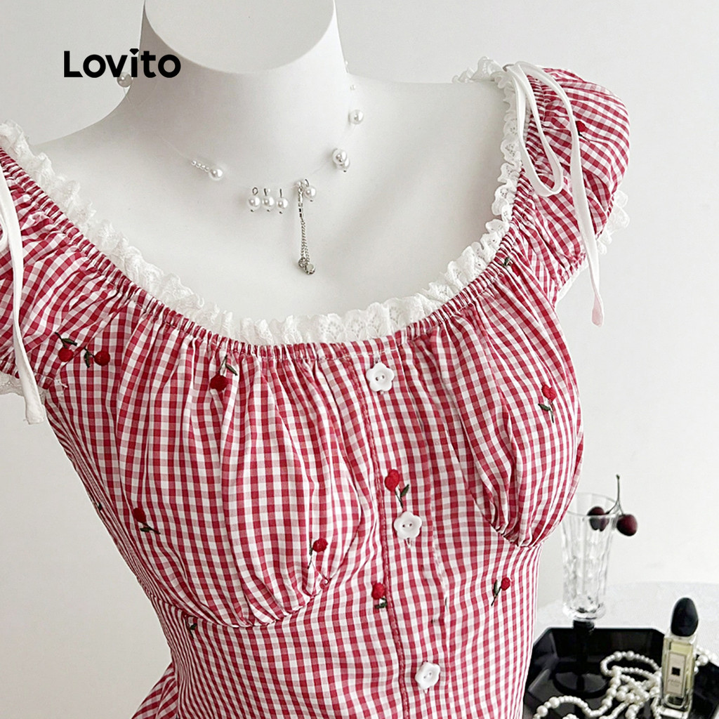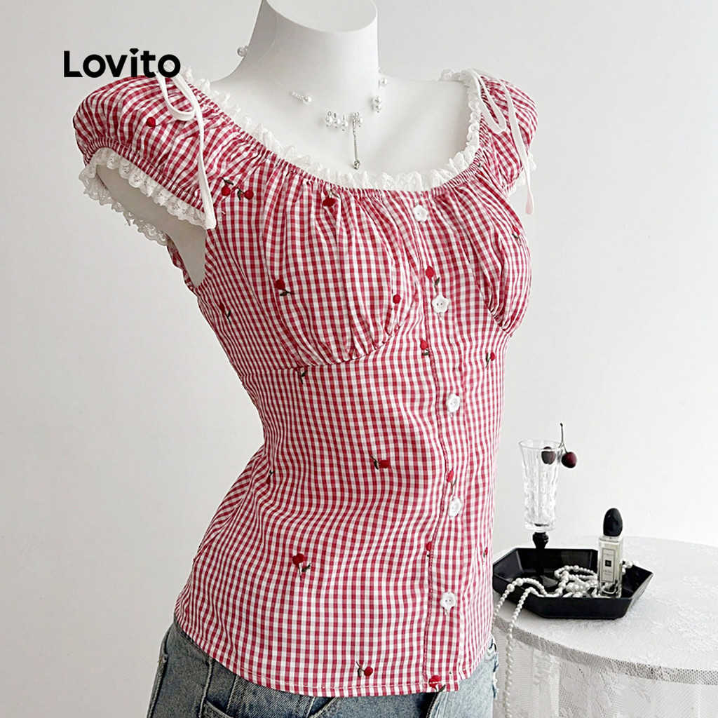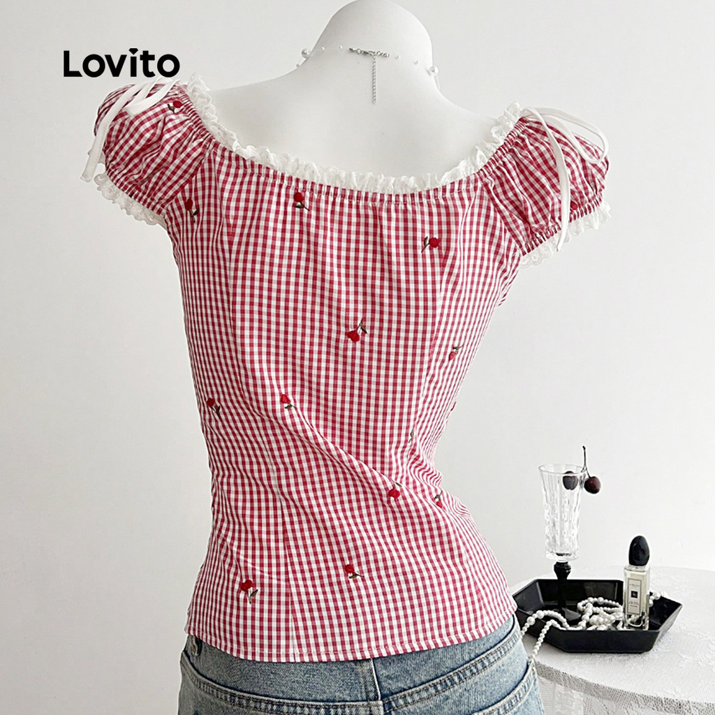 Lovito Blusa Vermelha Feminina De Renda Com Laço Primavera Verão L144AD157
