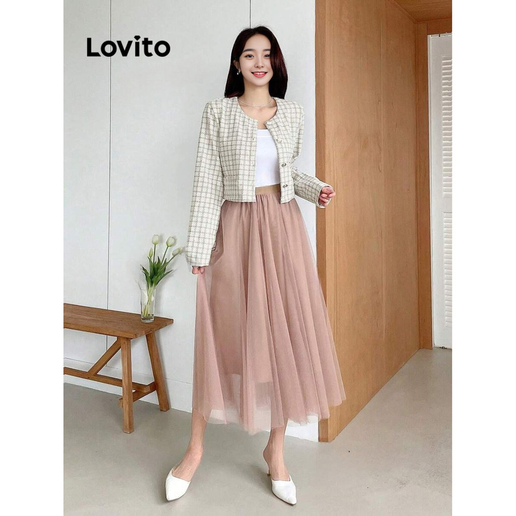 Lovito Casaco Feminino Clássico Xadrez Com Botões E Detalhes De Pérolas L101AD091