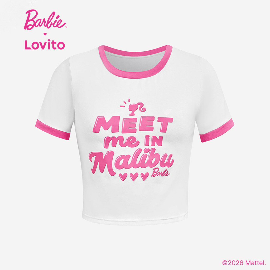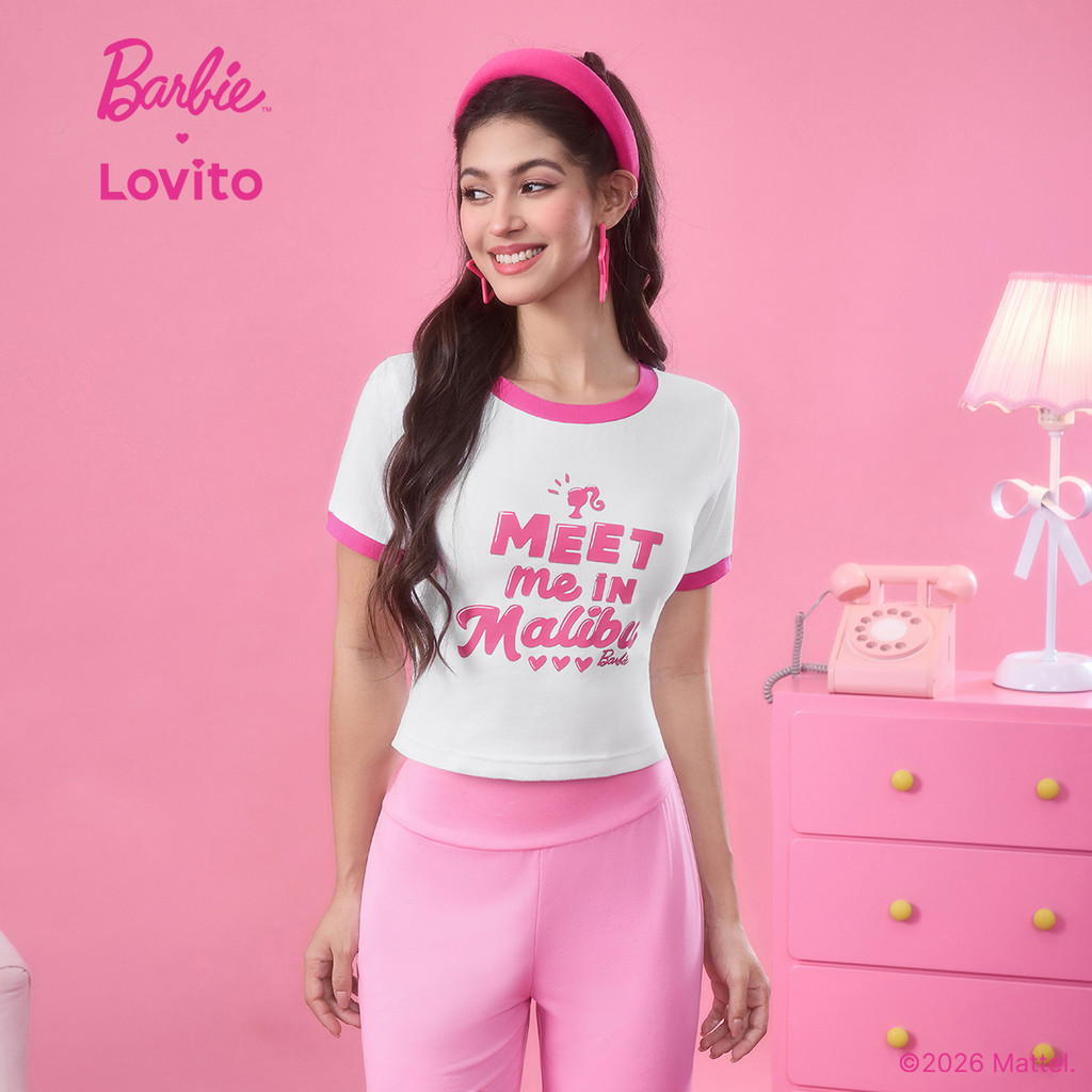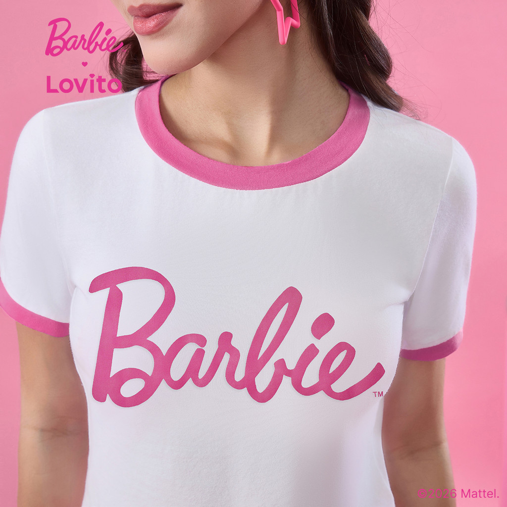 Barbie™ X Lovito Camiseta Casual Em Algodão Branco Primavera/verão Para Mulheres LB1AD023
