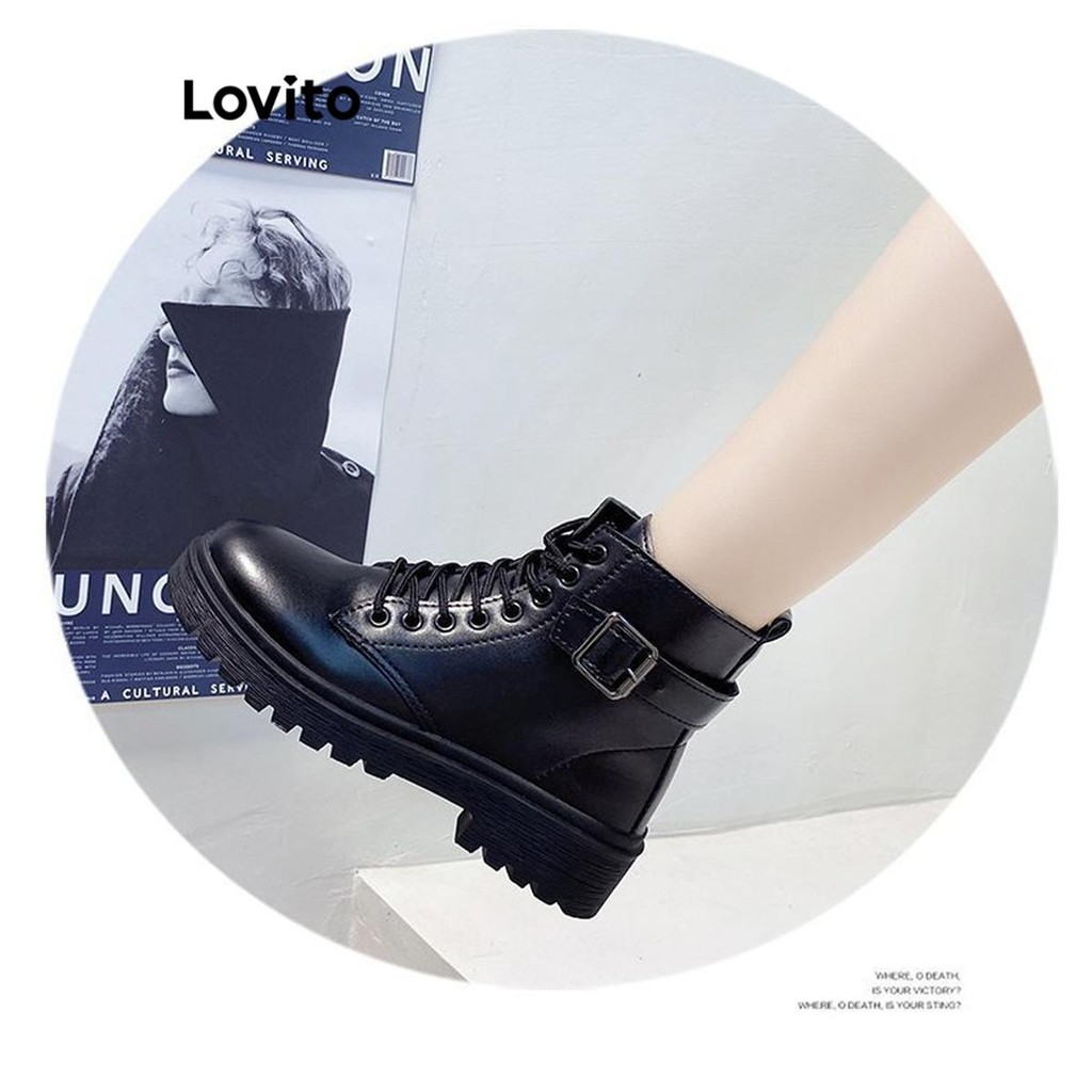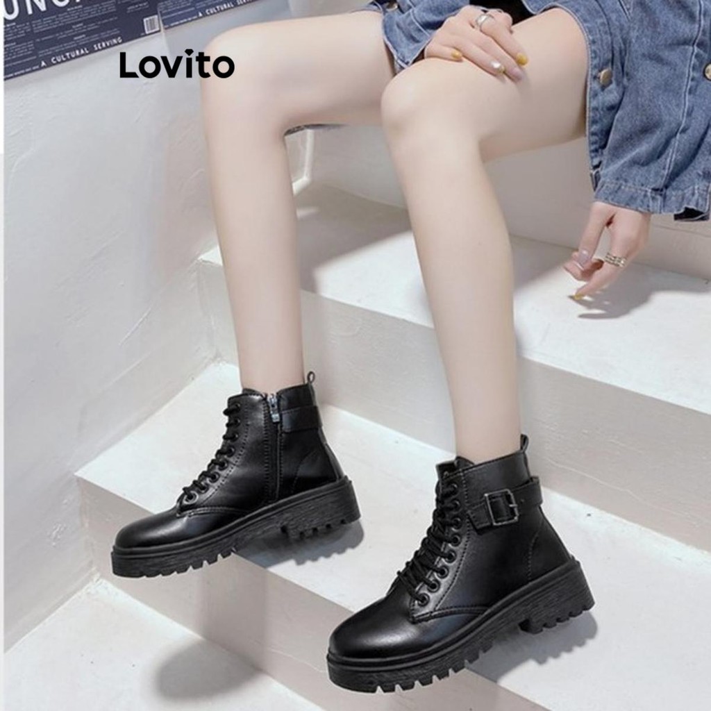 Lovito Botas Femininas Casuais Lisas Com Cadarço Moda Primavera LFA45302