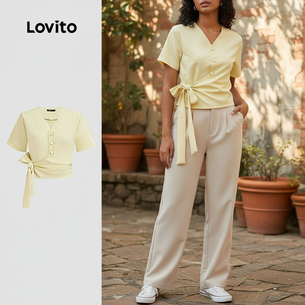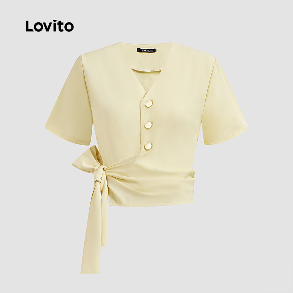 Lovito Blusa Feminina Casual Com Amarração E Botões L129AD1033\2