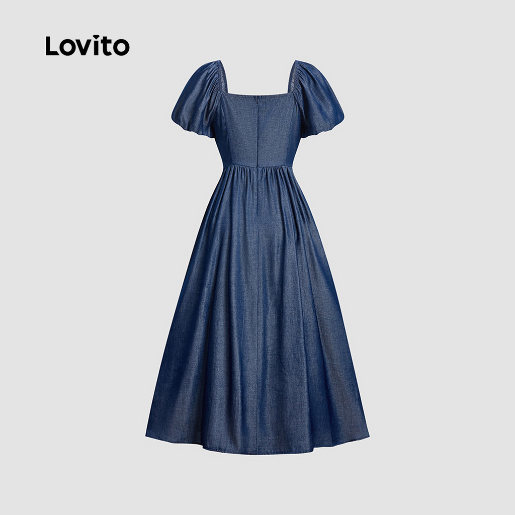 Lovito Vestido Casual Jeans Botão Toque Macio Azul Primavera Verão LBL26264