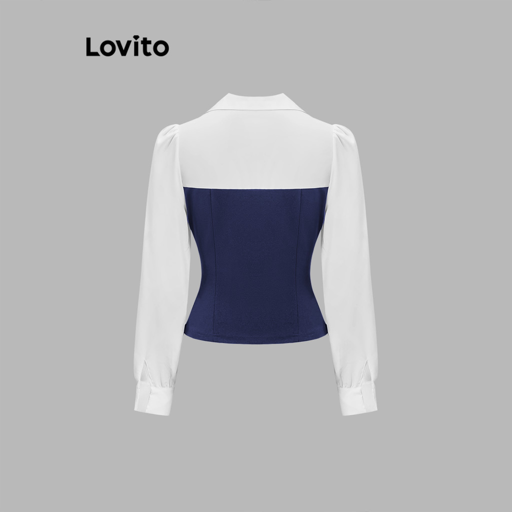 Lovito Camisa Casual Feminina Em Tecido Liso Com Detalhes de Costura L110AD225