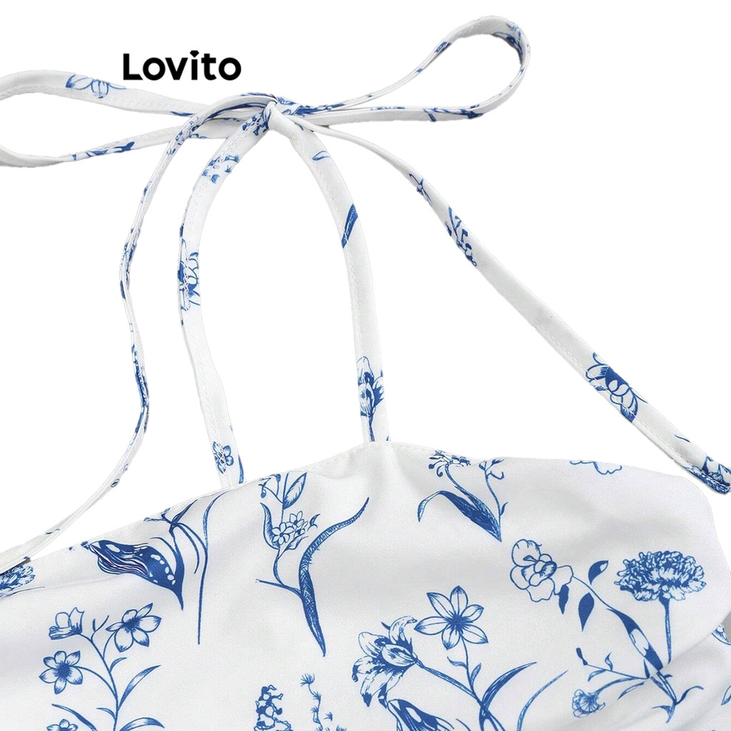 Lovito Regata Casual Floral Delicada Com Amarração Regata Verão Feminina L108ED336