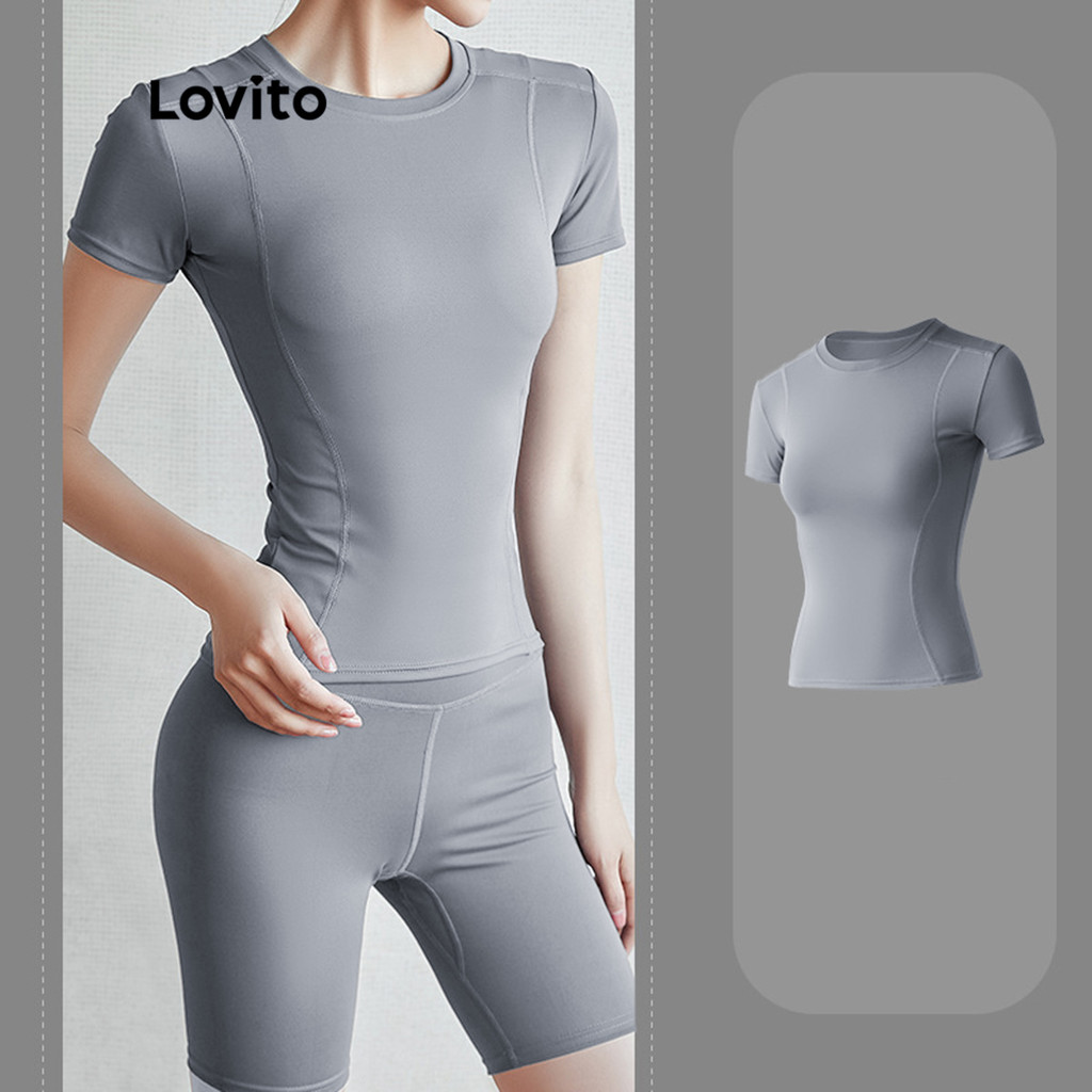 Lovito Refine Camiseta Esportiva Feminina para Corrida Yoga e Pickleball em Multicolor LNA13051