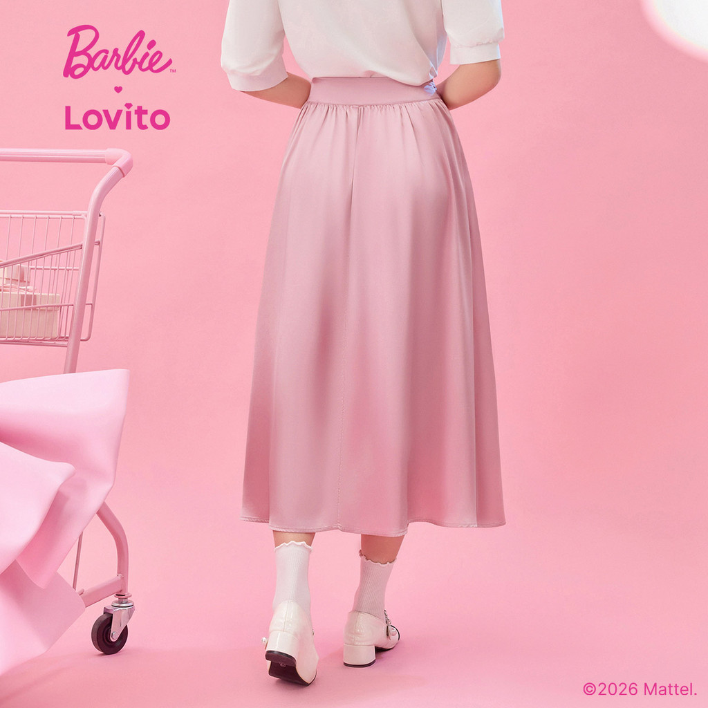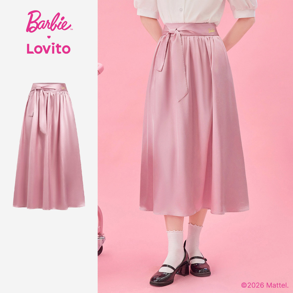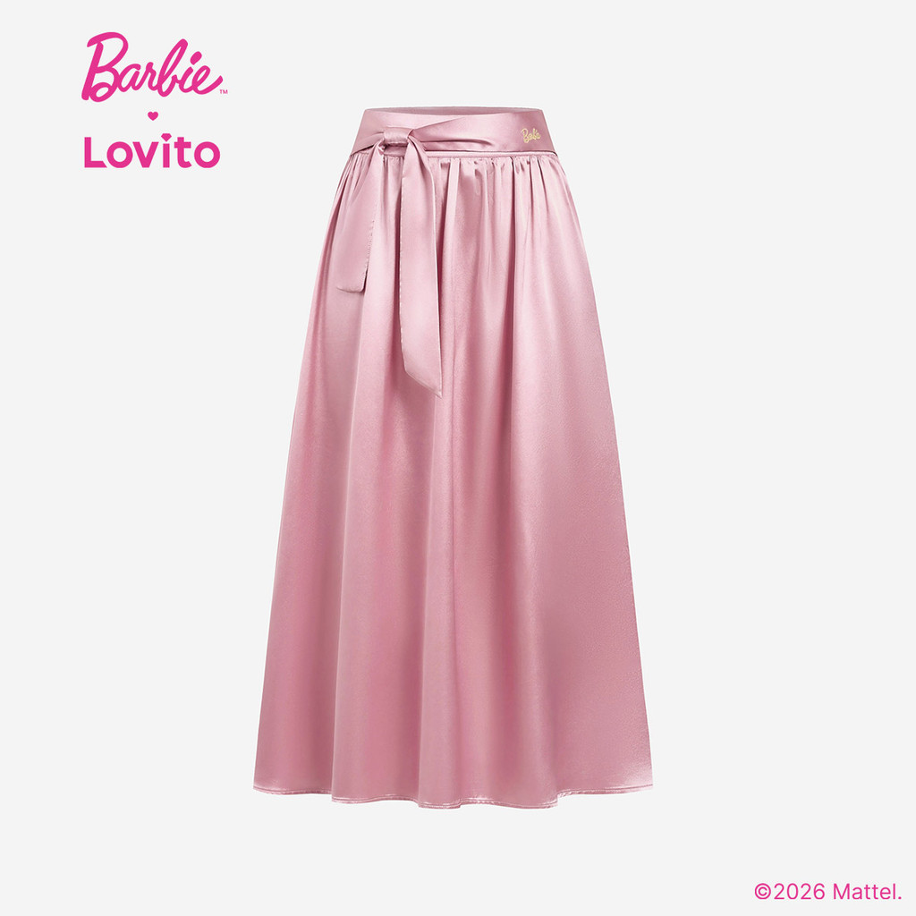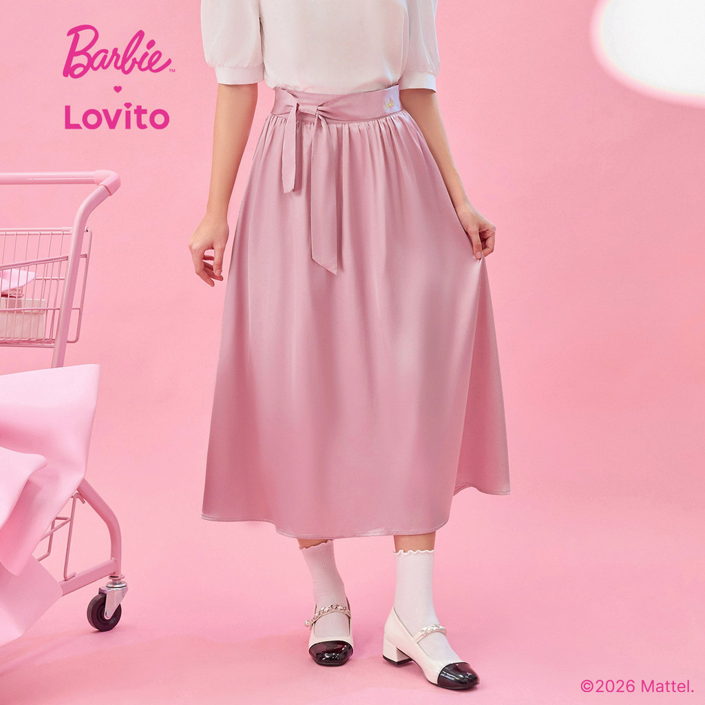 (New arrival) Barbie™ X Lovito Saia Casual Laço Frontal Babado Bainha Primavera/Verão Rosa Mulheres SKBL2PAD048