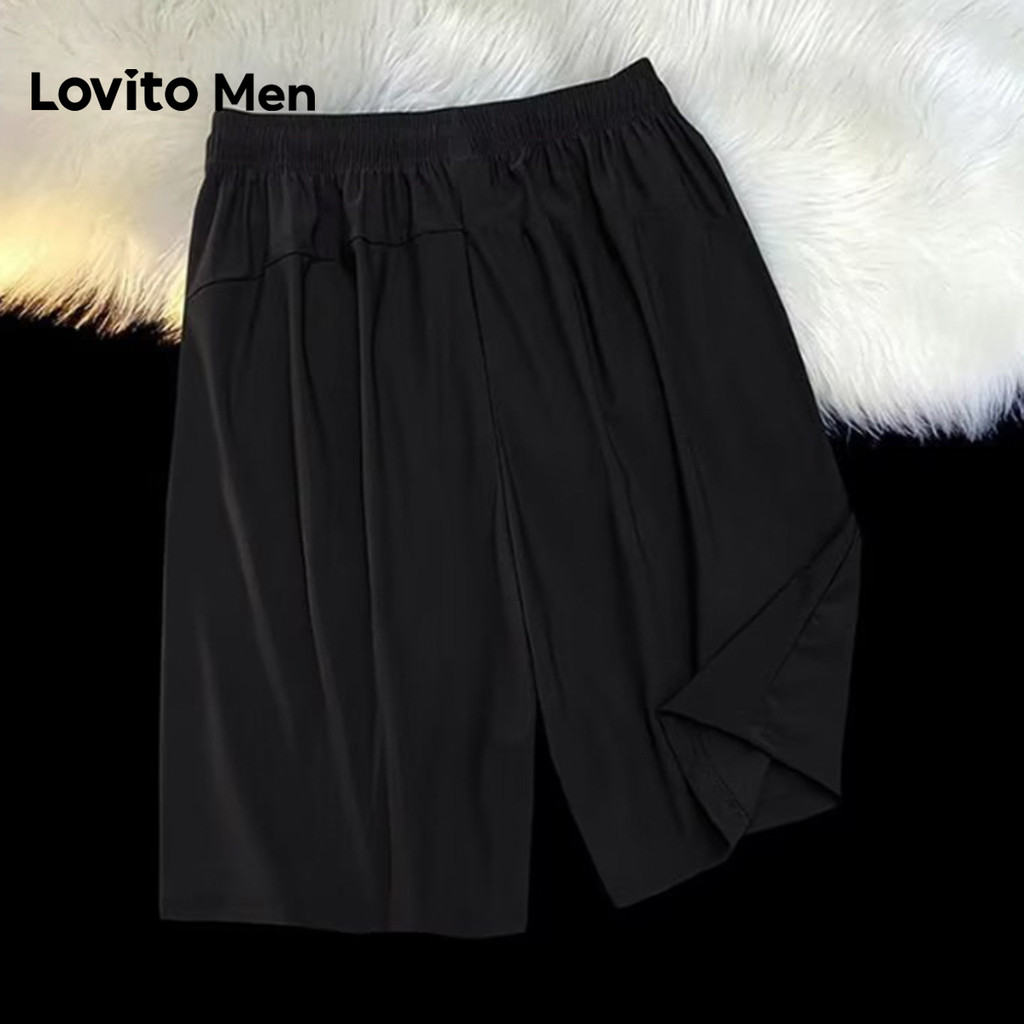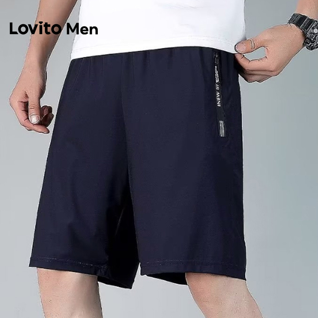Lovito Men Shorts Casuais com Zíper para Primavera/verão Shorts Pretos para Homens LNE127104
