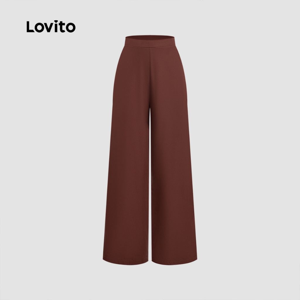 Lovito Elegantes e Botão Frontal Ombro Frio Primavera/verão Calças Cáqui para Mulheres L172LD1191
