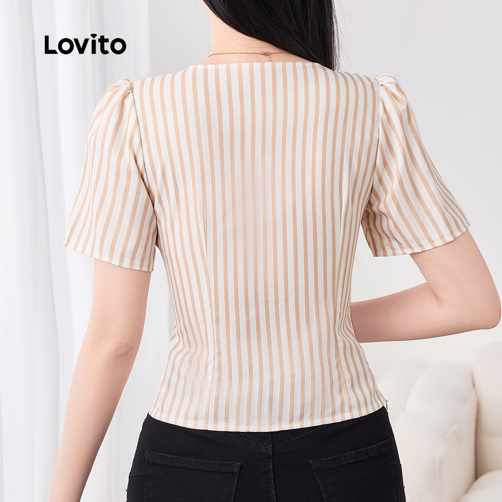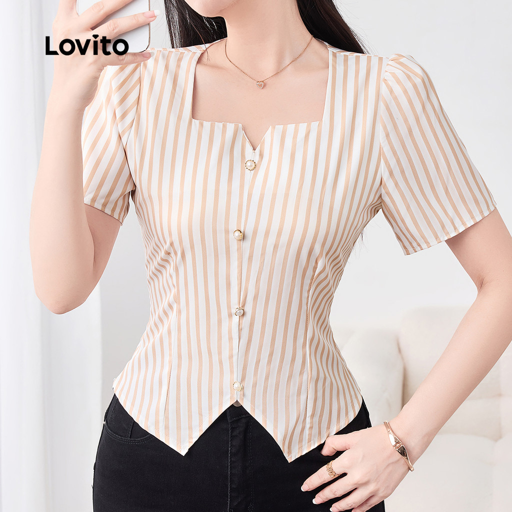 Lovito Blusa Elegante com Botões de Pérola Primavera/verão Blusa Caqui para Mulheres L158ED1081