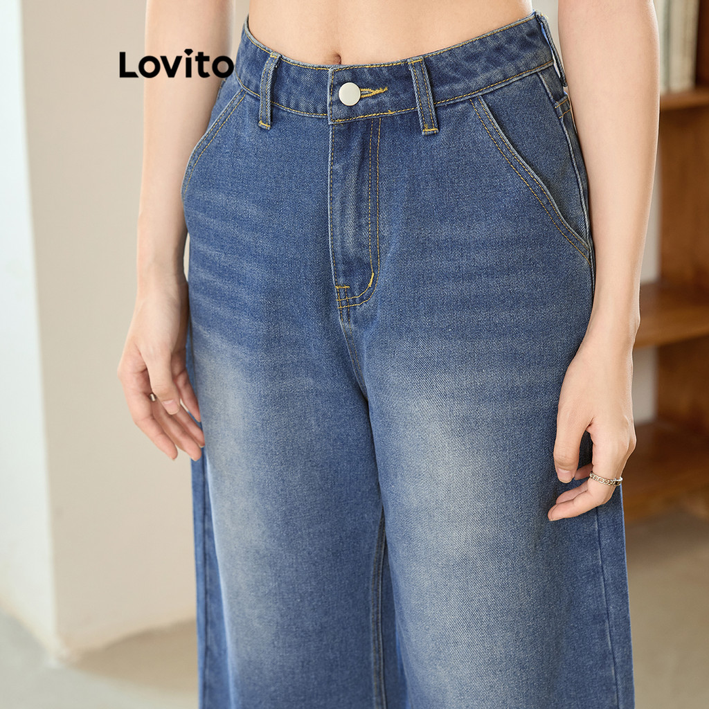 Lovito Shorts Jeans Leves Com Botão Verão/Primavera Para Mulheres L99ED931