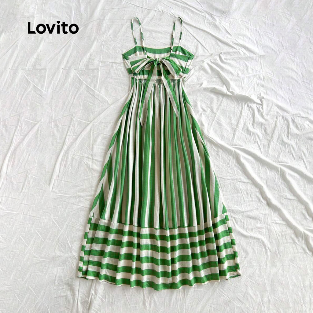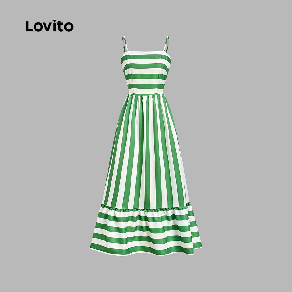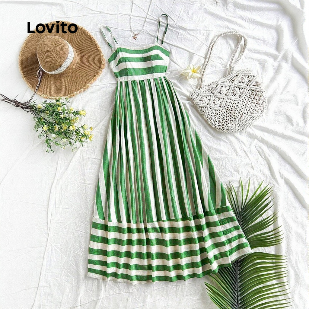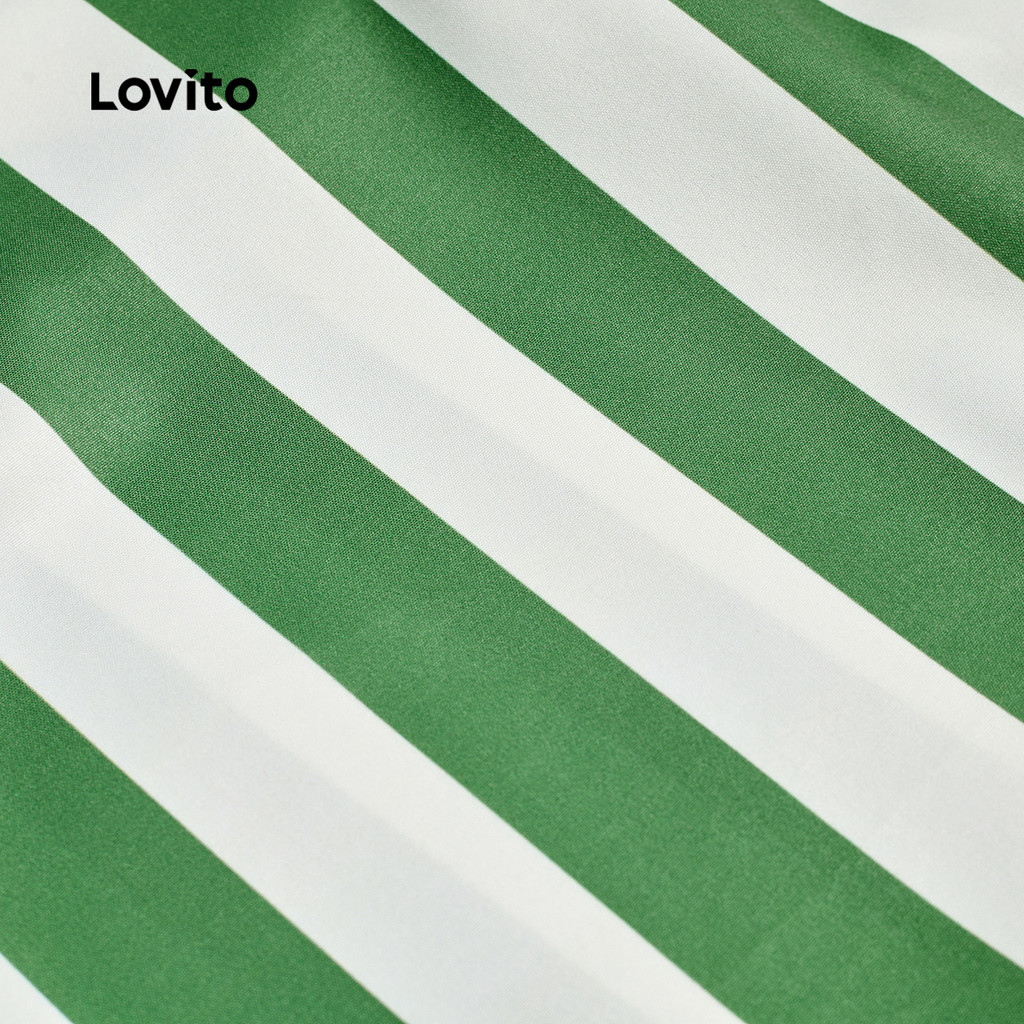 Lovito Vestido Casual Ombro Frio com Zíper em Tecido Costurado Primavera/verão Verde para Mulheres LBL32184