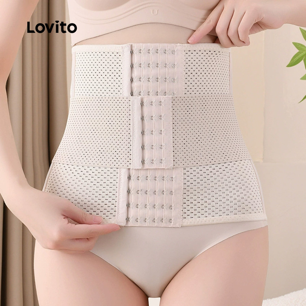 Lovito Shapewear Casual com Botão Melhorado Suave Elasticidade 4 Vias Controle Abdominal para Mulheres LNE126116