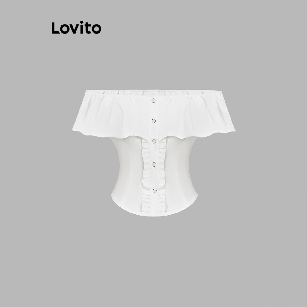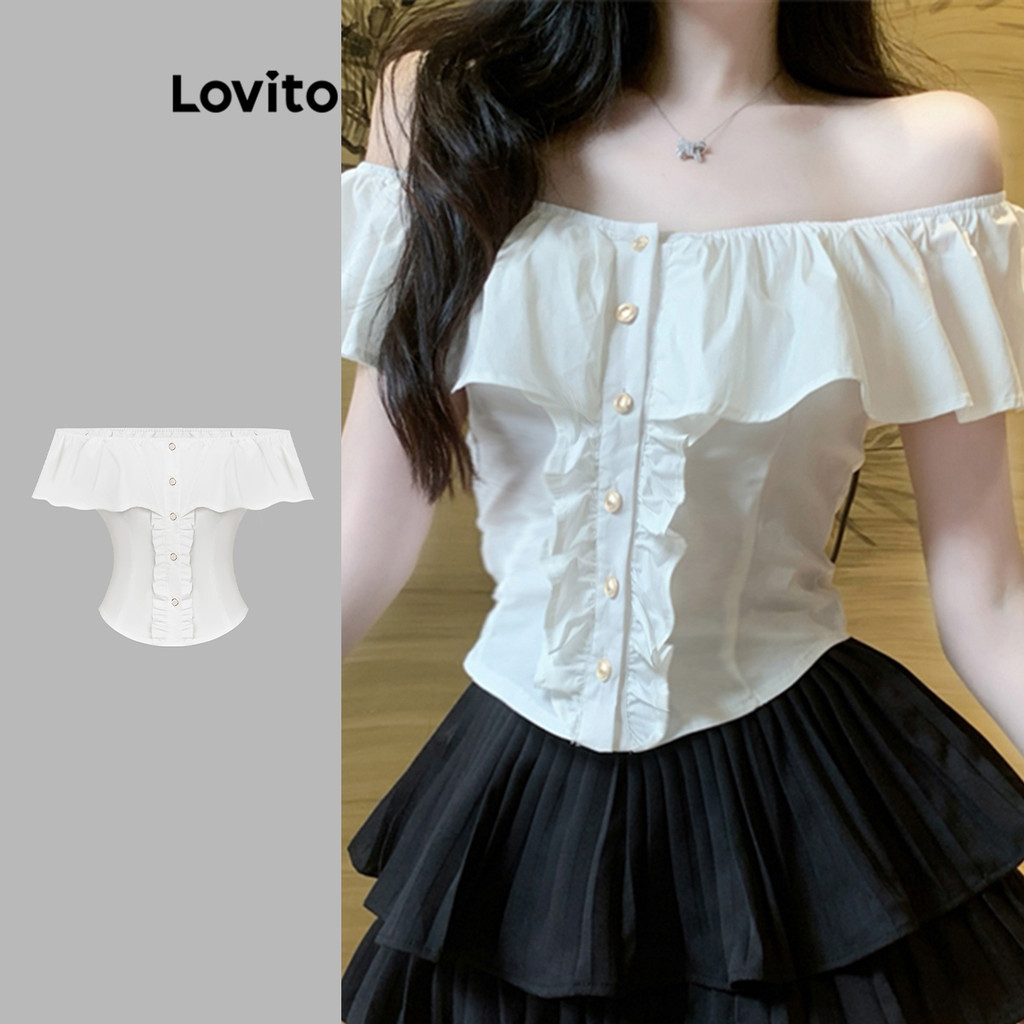 Lovito Blusa Delicada Plissada Lisa Com Babados E Botões Frontais Para Mulheres L114AD634