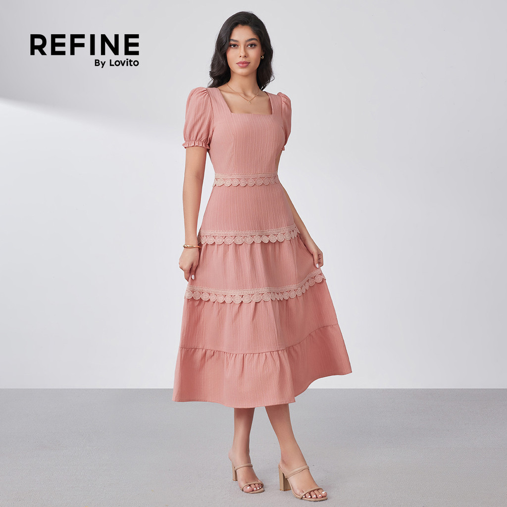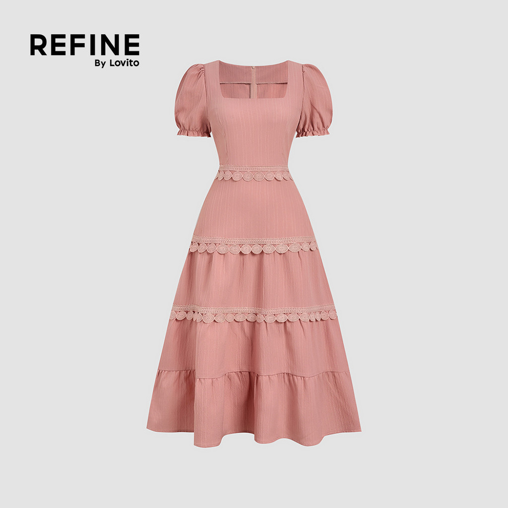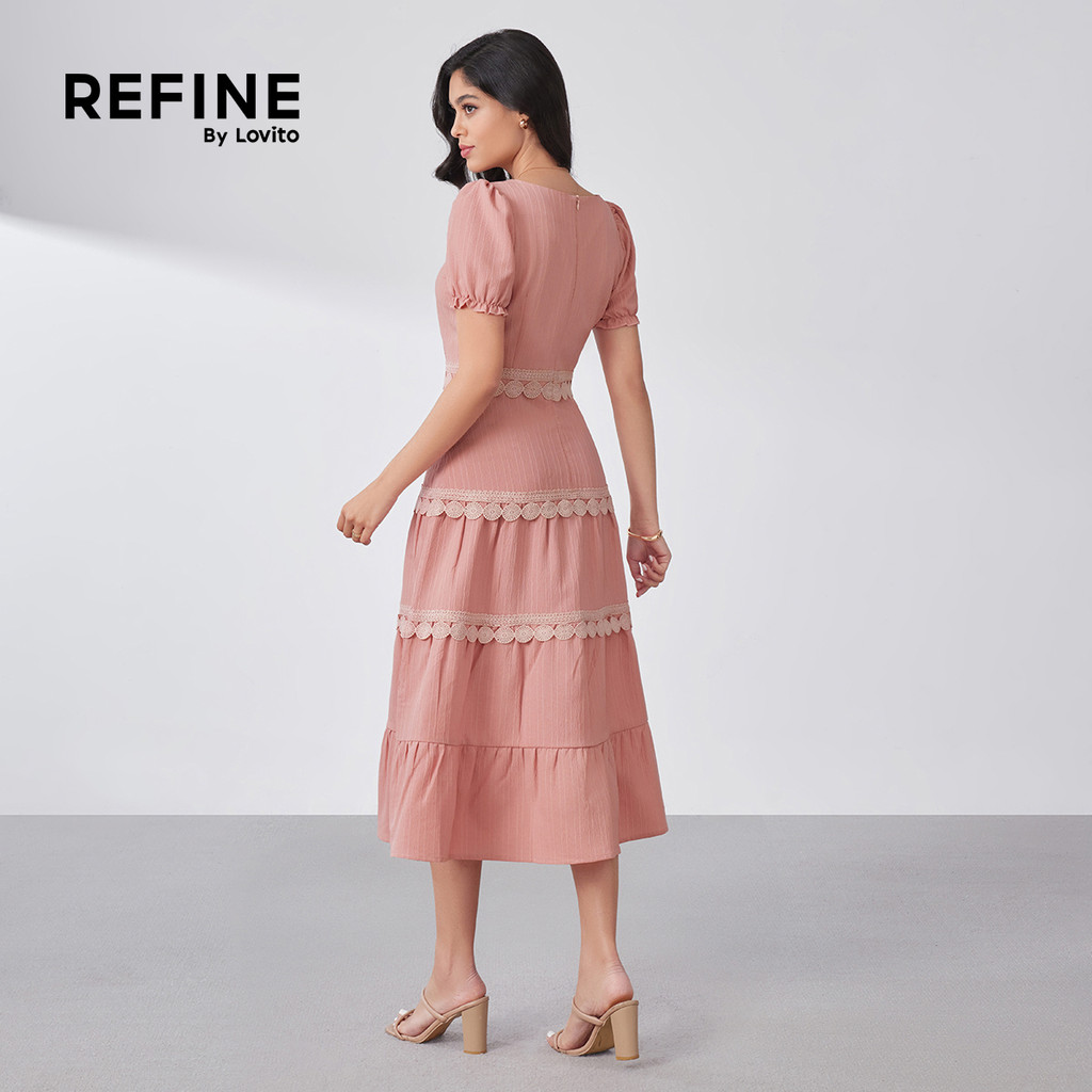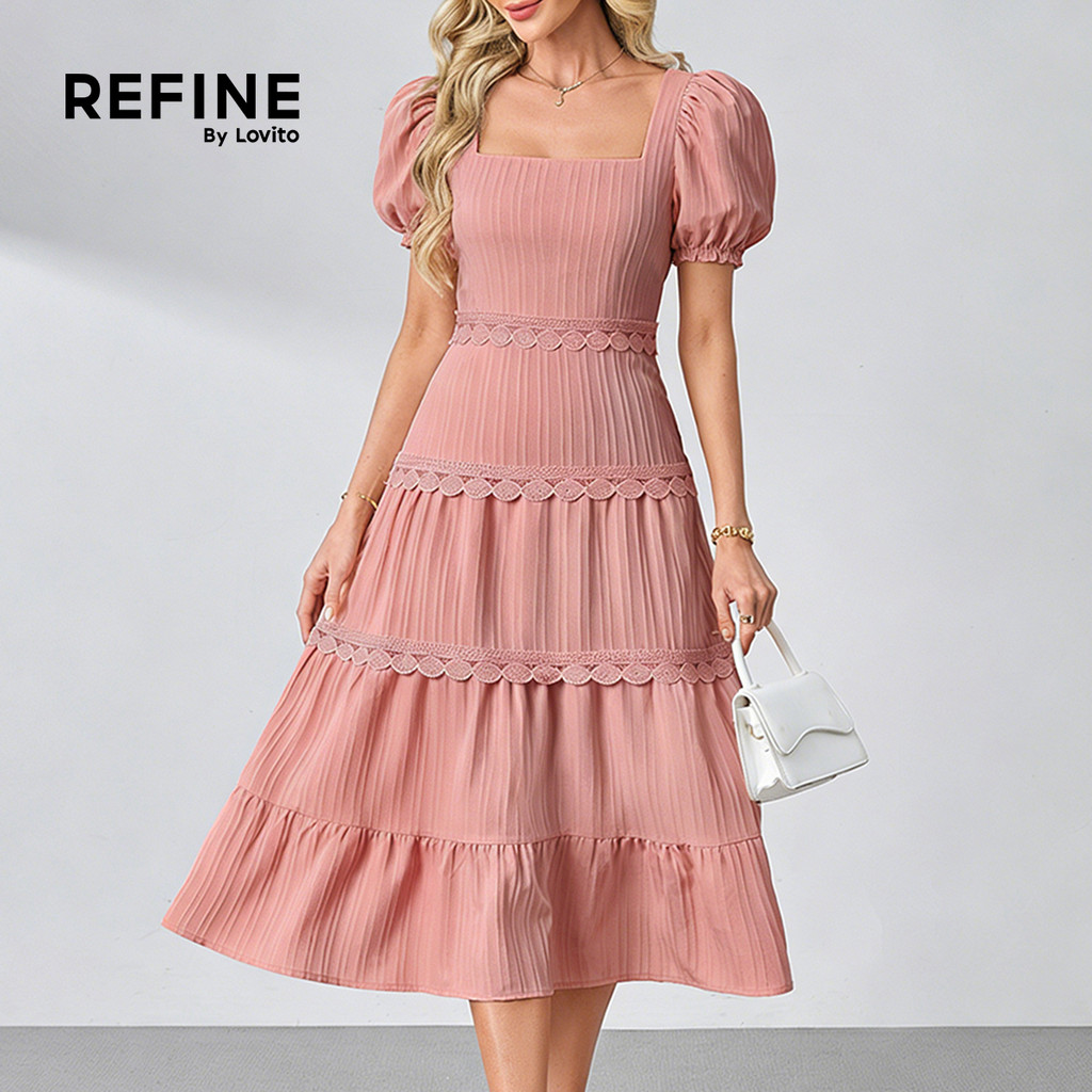 (Refine by Lovito) Vestido Elegante com Camadas em Degradé Primavera/verão Rosa para Mulheres. LR32L106