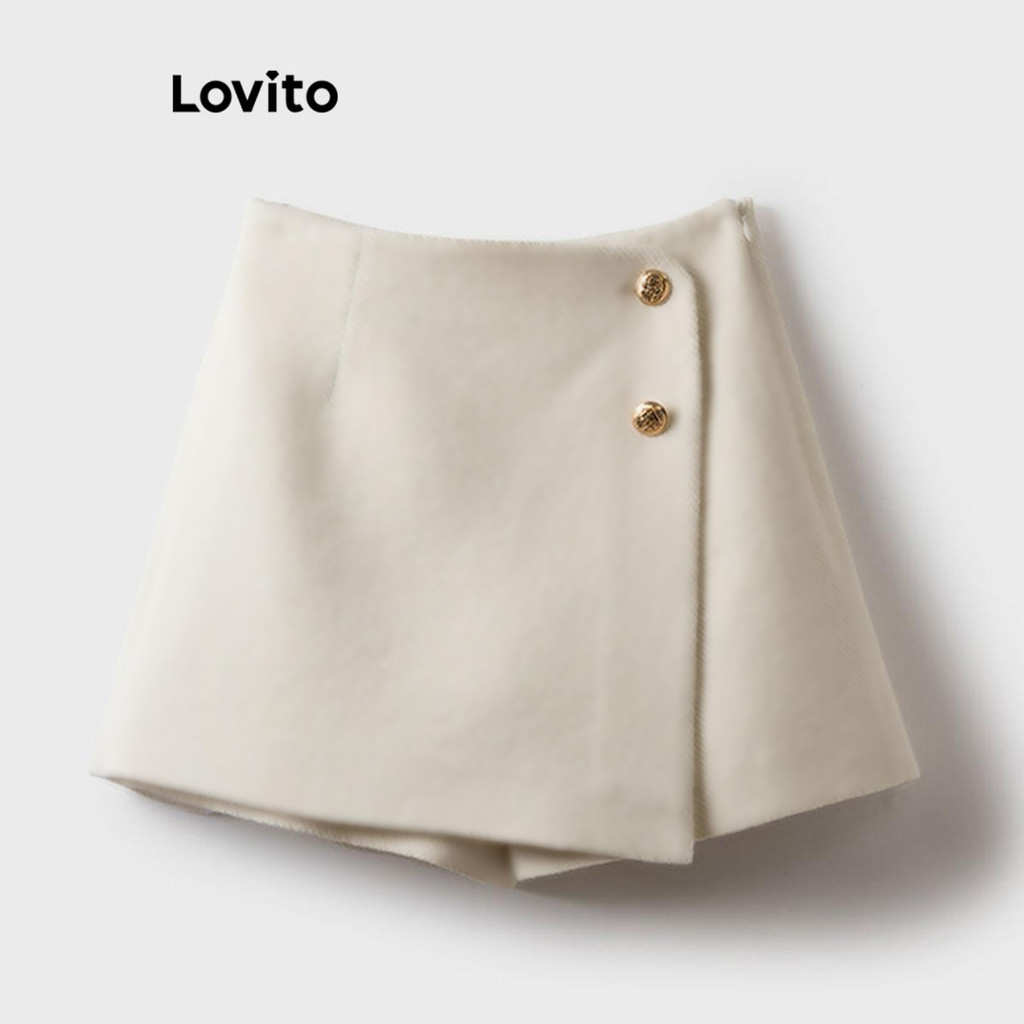 Lovito Shorts Refinados com Botões para Verão/Primavera Feminino LNL58164