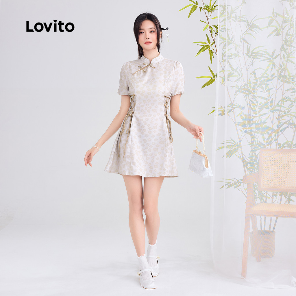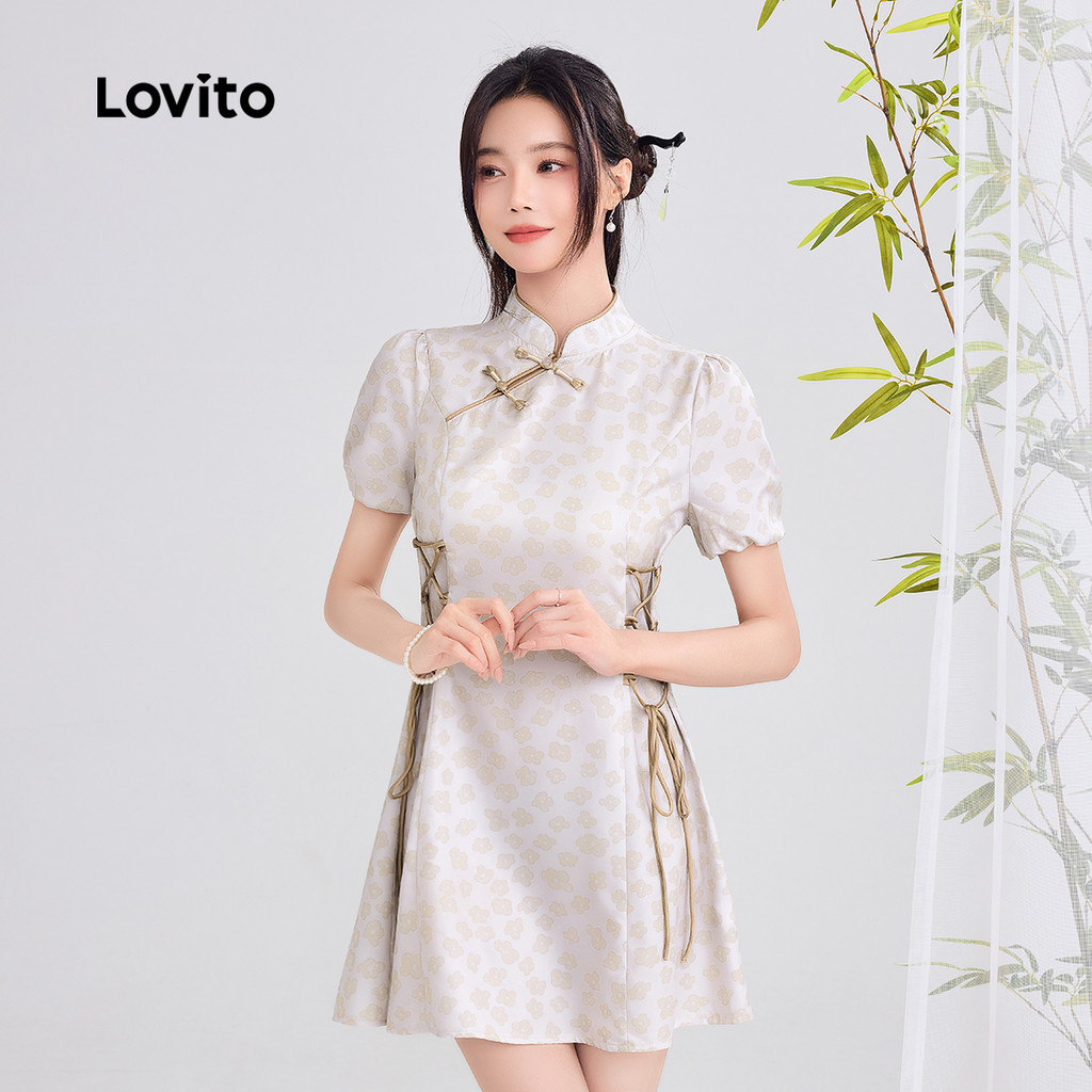 Lovito Vestido Elegante Novo Estilo Chinês Cheongsam Qipao Primavera/verão Cinza Verde Vestido L166AD029