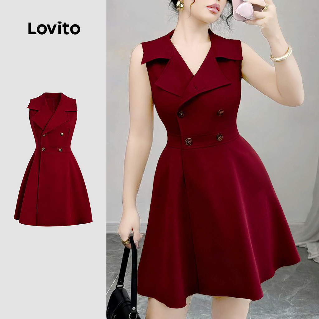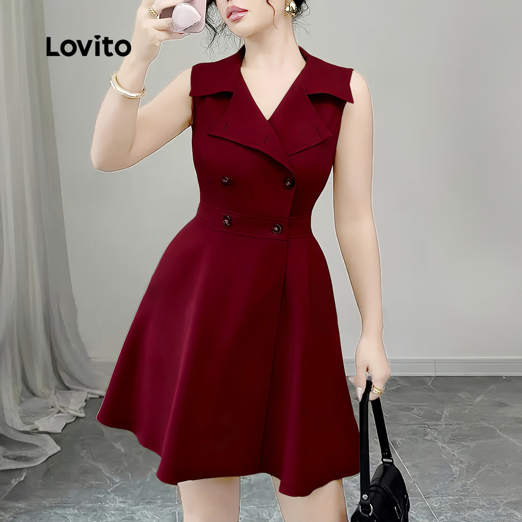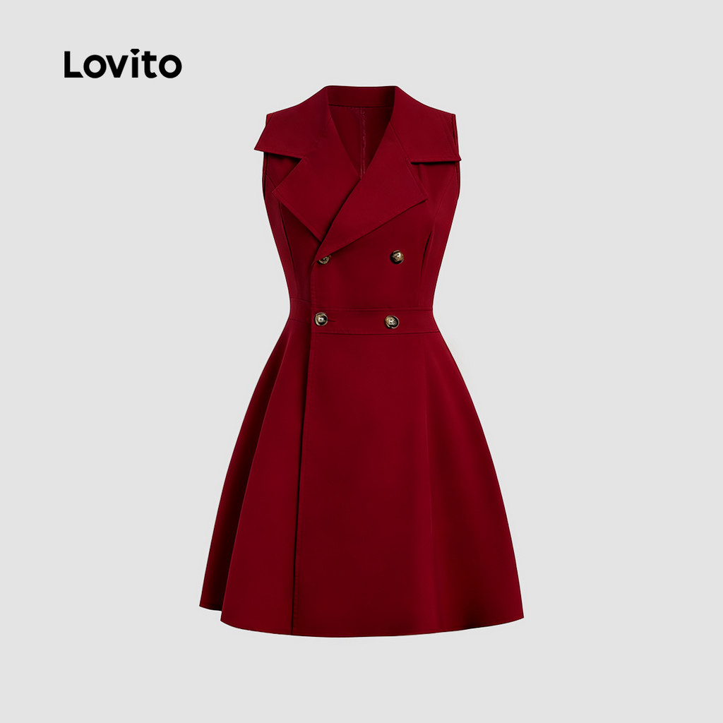 Lovito Refine Vestido Feminino Botão Casual Primavera Verão Cor Bordeaux L158ED336