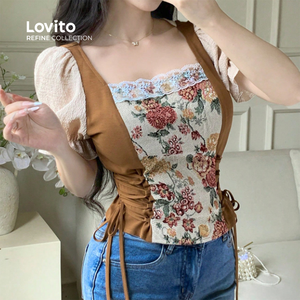 Blusa Boho Feminina em Tecido com Costuras Coloridas para Primavera/Verão LR23E002