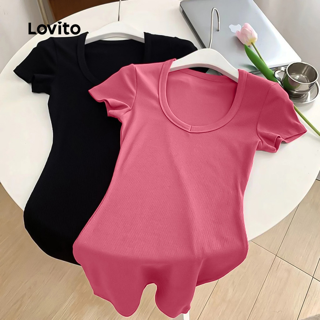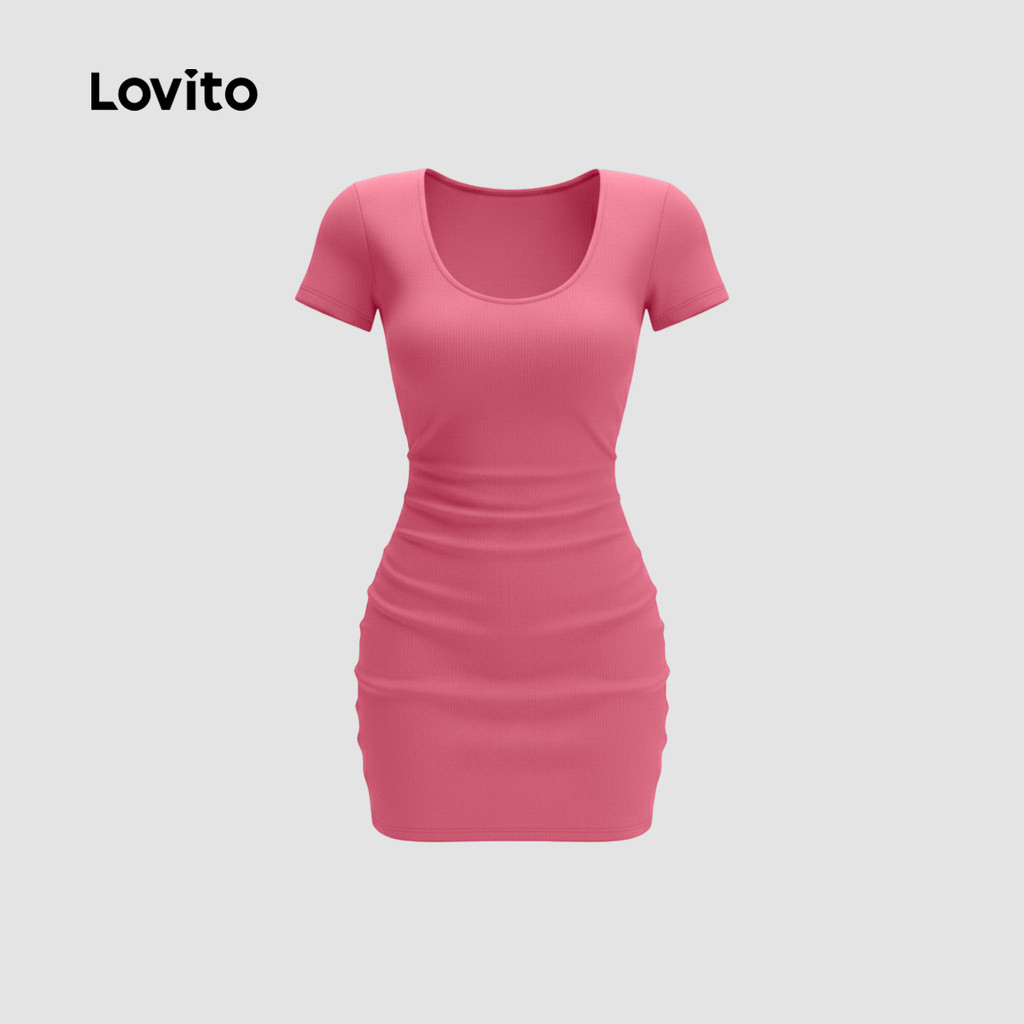 Lovito Vestido Casual com Padrão Exquisito para Primavera/verão em Rosa Vermelha para Mulheres LNE134060