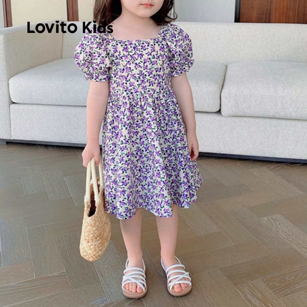 Lovito Vestido infantil Colorido com Drapeado para Meninas Primavera Verão LNL119129