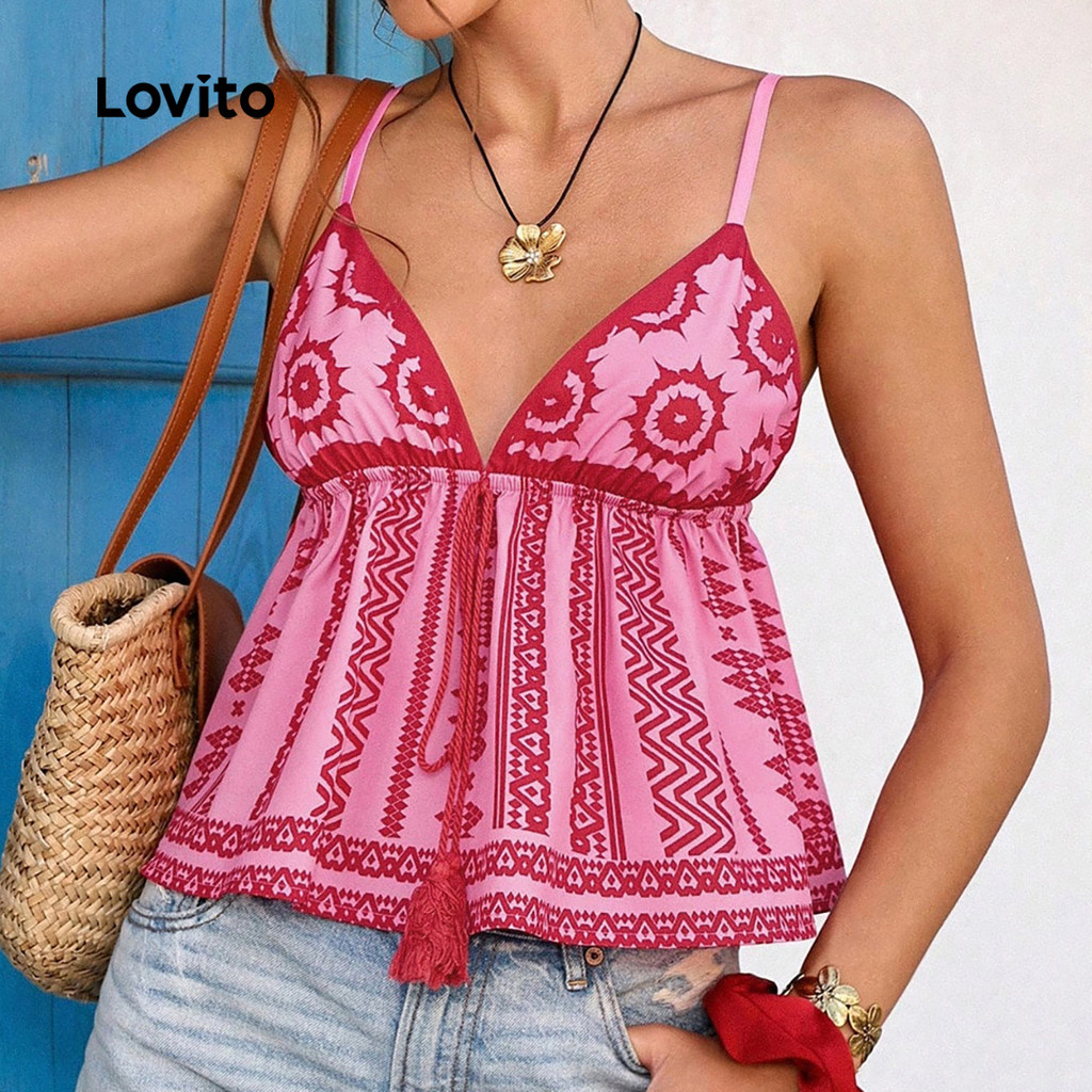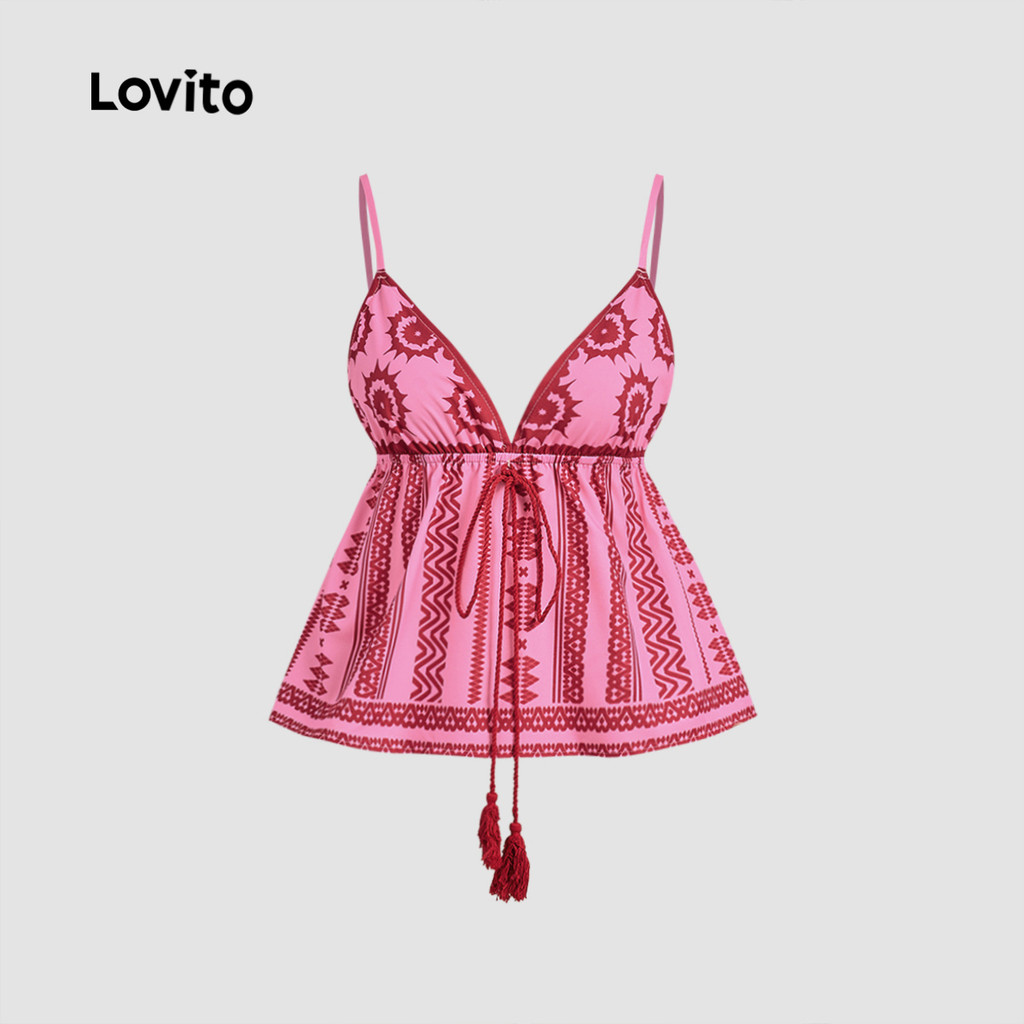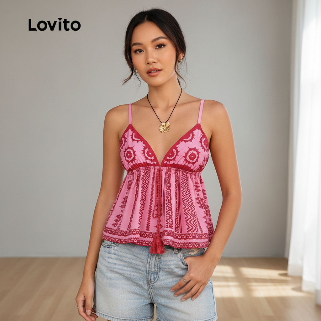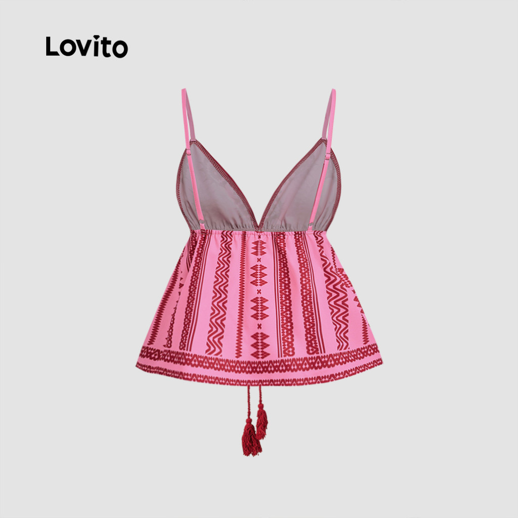 Lovito Blusa Boho Feminina Tassel Sem Costas Primavera Verão LBL32267