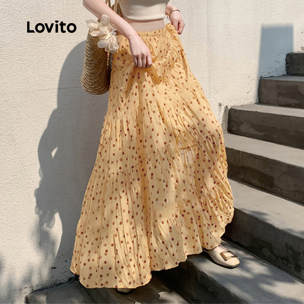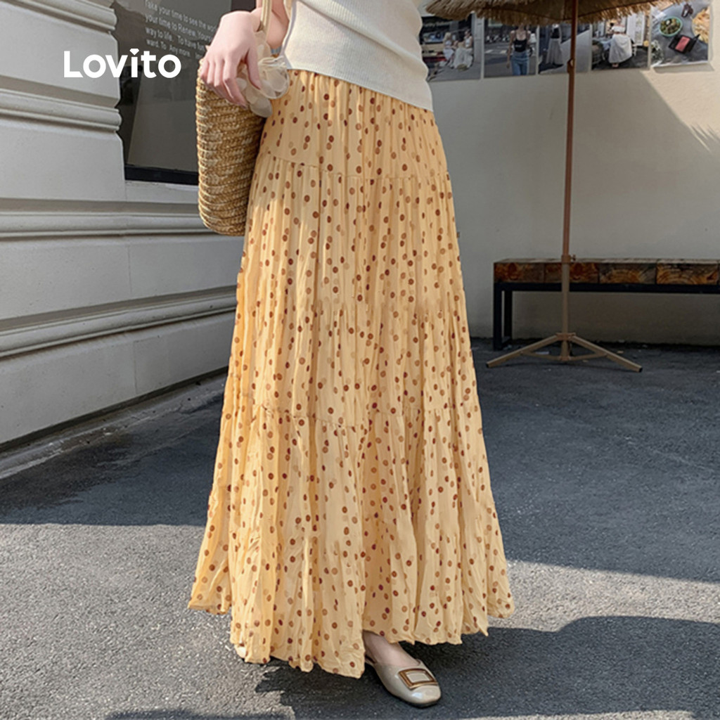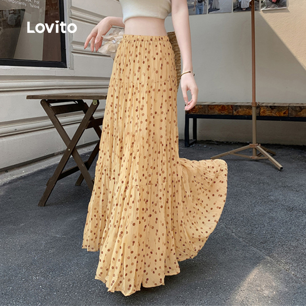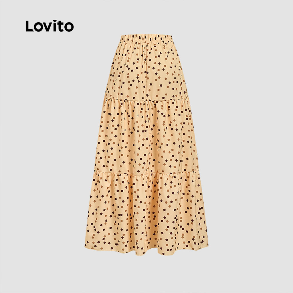 Lovito Saias Casuais Lazer Primavera/verão Saias Cáqui para mulheres L166AD949